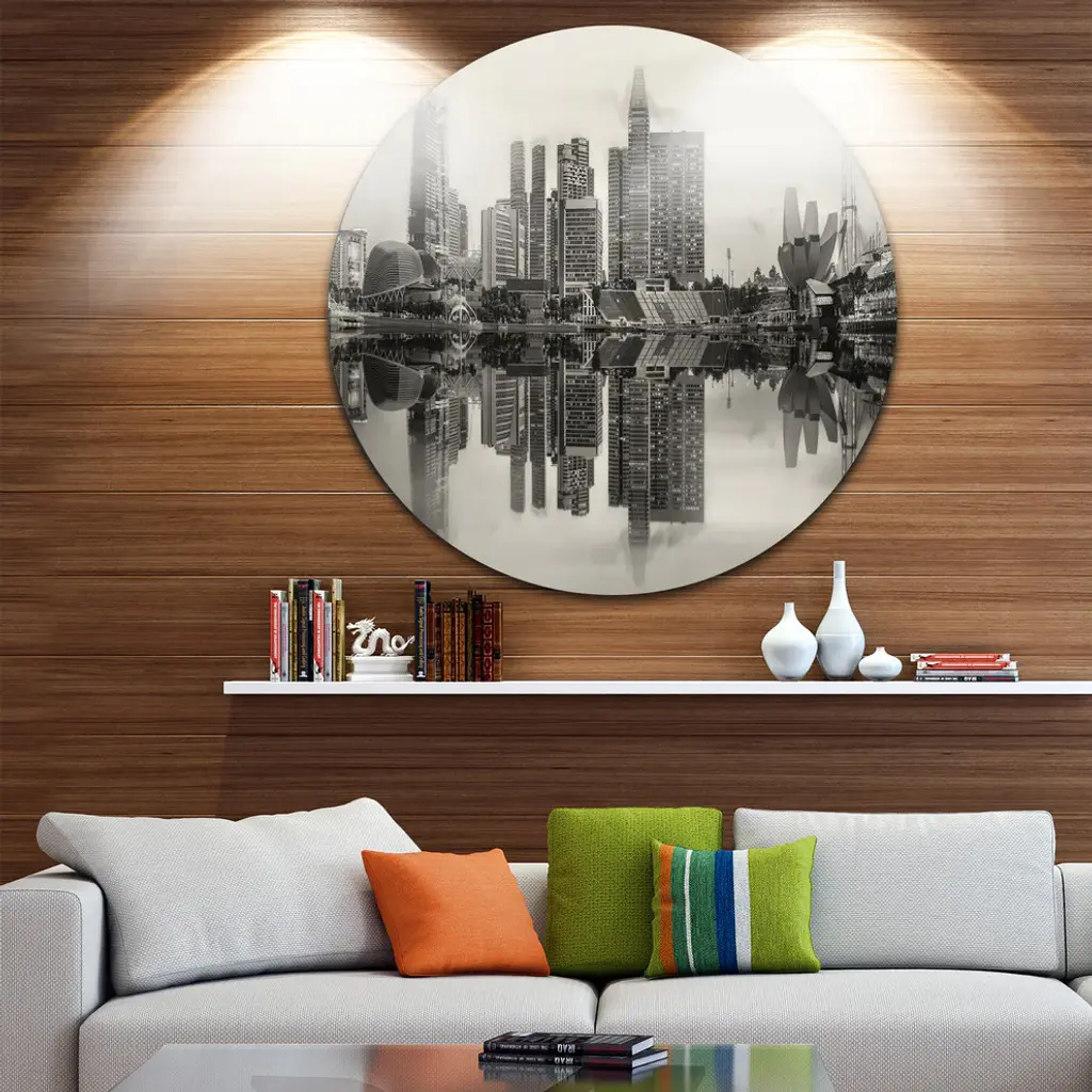 Singapore Skyline View Panorama, Cityscape Round Metal Wall Art, 23"