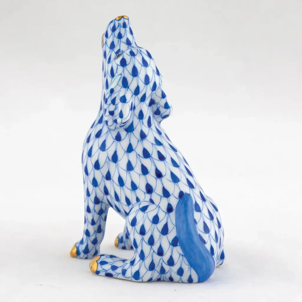 Endearing animals meek and bold, large and small, demure and majestic eagerly await the chance to melt your heart and warm your home. Each is brought to life by the skilled hands of artisans crafting and painting these charming porcelain creatures. The famous fishnet decor adorning many of the animals took form in 1858 when a Herend painter became inspired by a fishscale design he saw on a Chinese porcelain plate and painted a similar pattern onto a rooster figurine to imitate feathers. The rest is history, with the fishnet design now a Herend signature prized worldwide. Now the biggest porcelain manufactory in Europe, Herend was founded in 1826 to produce earthenware in the small Hungarian village for which it was named. At the time, Hungary was flooded with low-cost pottery, but in 1839, Mor Fischer became the Manufactory’s new owner and he decided to focus on producing dinnerware replacement pieces for Europe’s royal families to complement their valuable porcelain patterns from Germany and the Far East. As his client base grew, Fischer commissioned his artists to begin designing dinnerware patterns of their own. Queen Victoria’s 1851 purchase of a large set for Windsor Castle was a milestone, setting the stage for aristocrats throughout Europe to clamor for Herend in their estates. In the 1850s, Herend added meticulously-crafted figurines to its creations. Herend’s trademark fishnet pattern, which is widely recognized and prized as Herend’s signature design, started in 1858 when an artist who was intrigued with a Chinese plate’s fish scale design painted it onto a rooster figurine to imitate feathers.