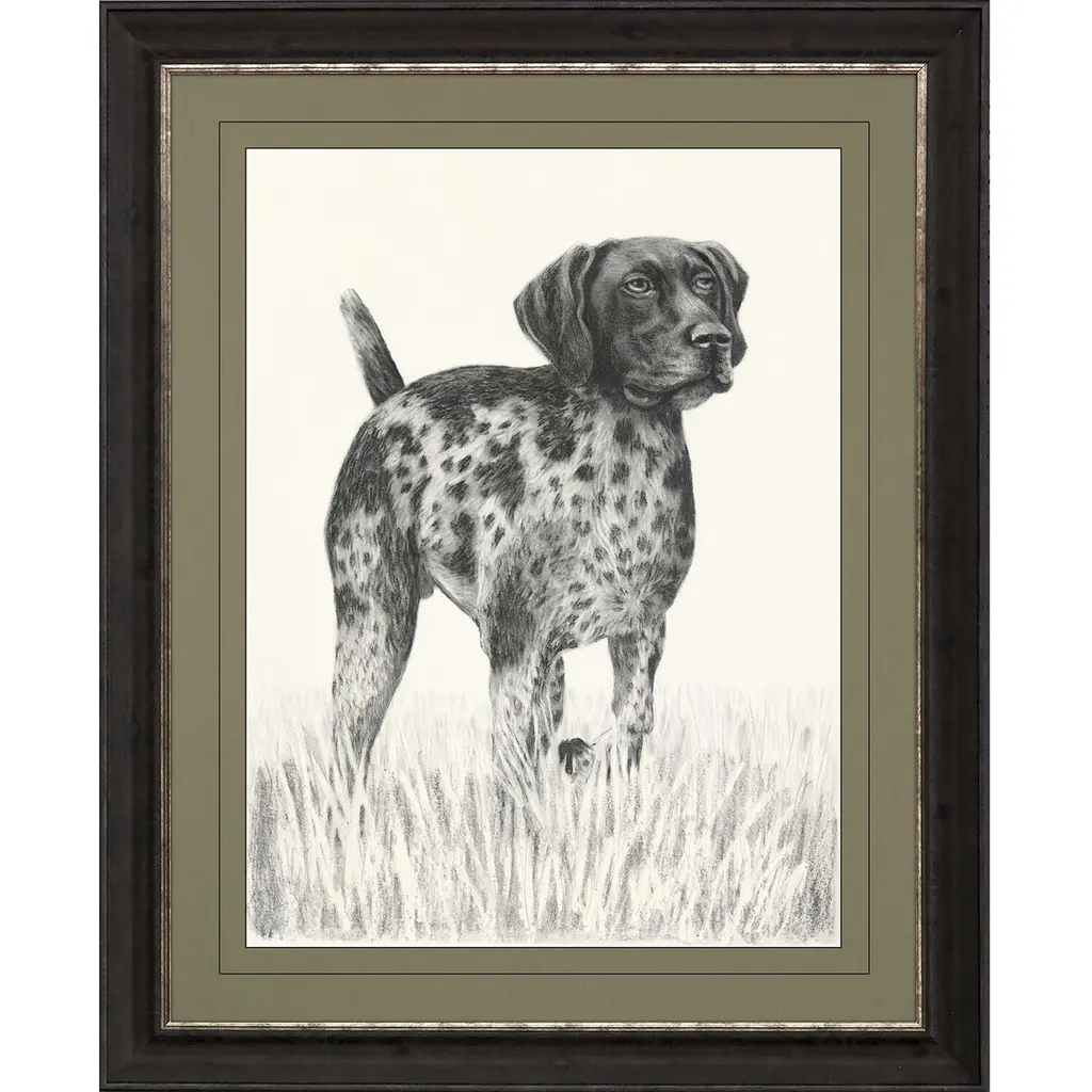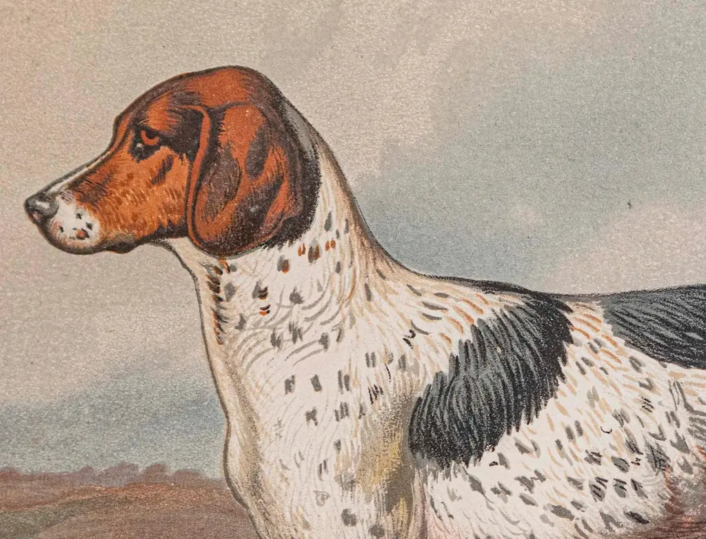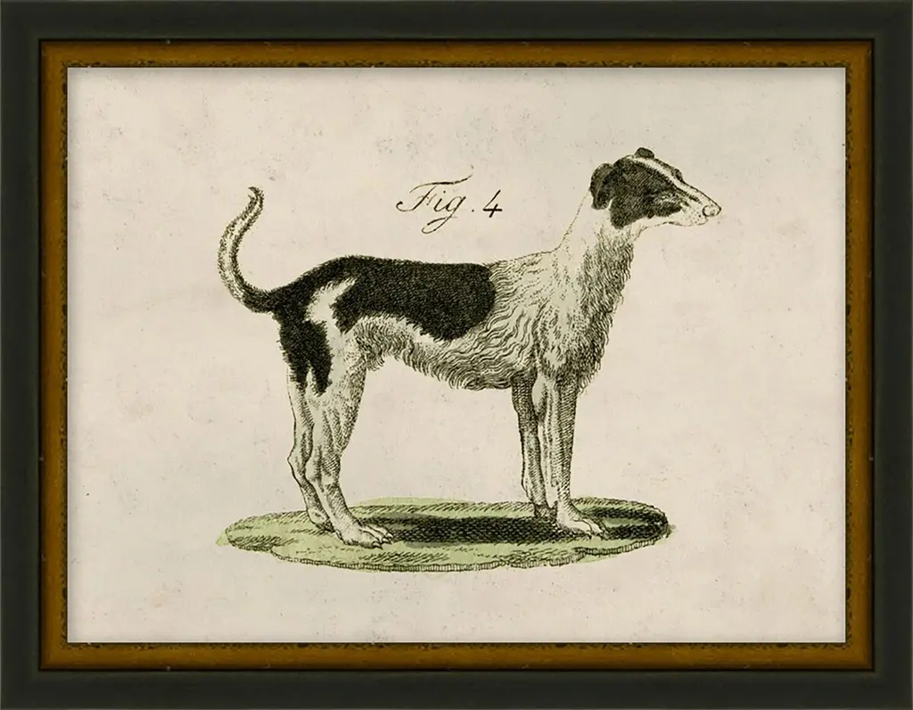 This piece is a framed chromolithograph dog print by Cassell, Petter, Galpin & Co, a renowned British publisher known for producing high-quality illustrated works in the late 19th century. The print is a reproduction from The Illustrated Book of the Dog, authored by Vero Shaw and published in 1881. This book, one of the earliest on dog breeds in English, featured beautifully detailed color plates that have become highly collectible for their artistic and historical significance. The print showcases various dog breeds in profile, with each dog rendered in vivid color and remarkable detail. Set against a natural landscape, the composition highlights the characteristic traits of the breeds while providing a scenic outdoor backdrop that enhances the overall elegance of the piece. The chromolithographic technique used in this print gives it a richness and depth that are characteristic of Victorian-era art. The print is professionally framed in a sleek black frame and secured under glass, ensuring its preservation and providing a polished, refined look suitable for any interior. Whether displayed alone or with other pieces from the same series, it brings a touch of classic sophistication and warmth to any space, making it a perfect addition for collectors or dog enthusiasts alike.