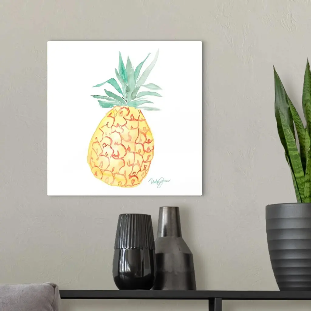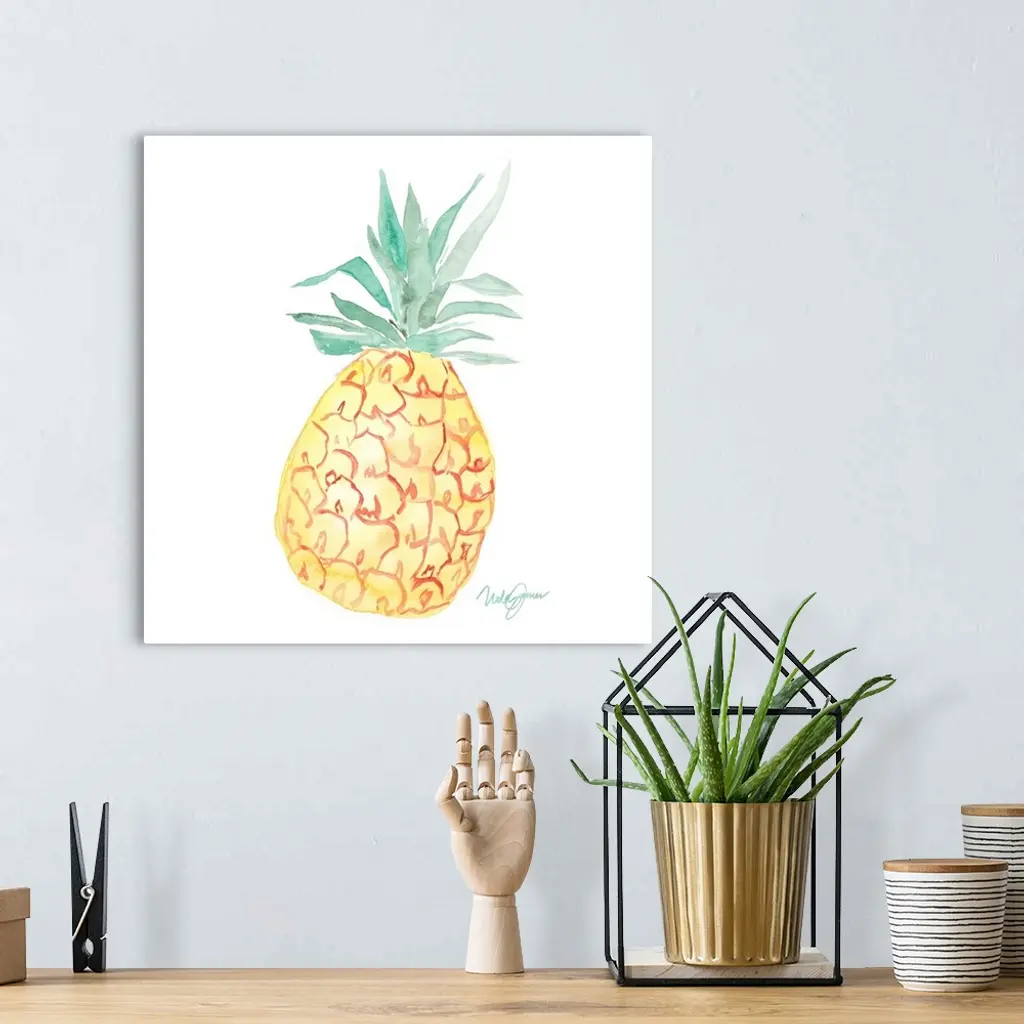 Square watercolor painting of a pineapple.