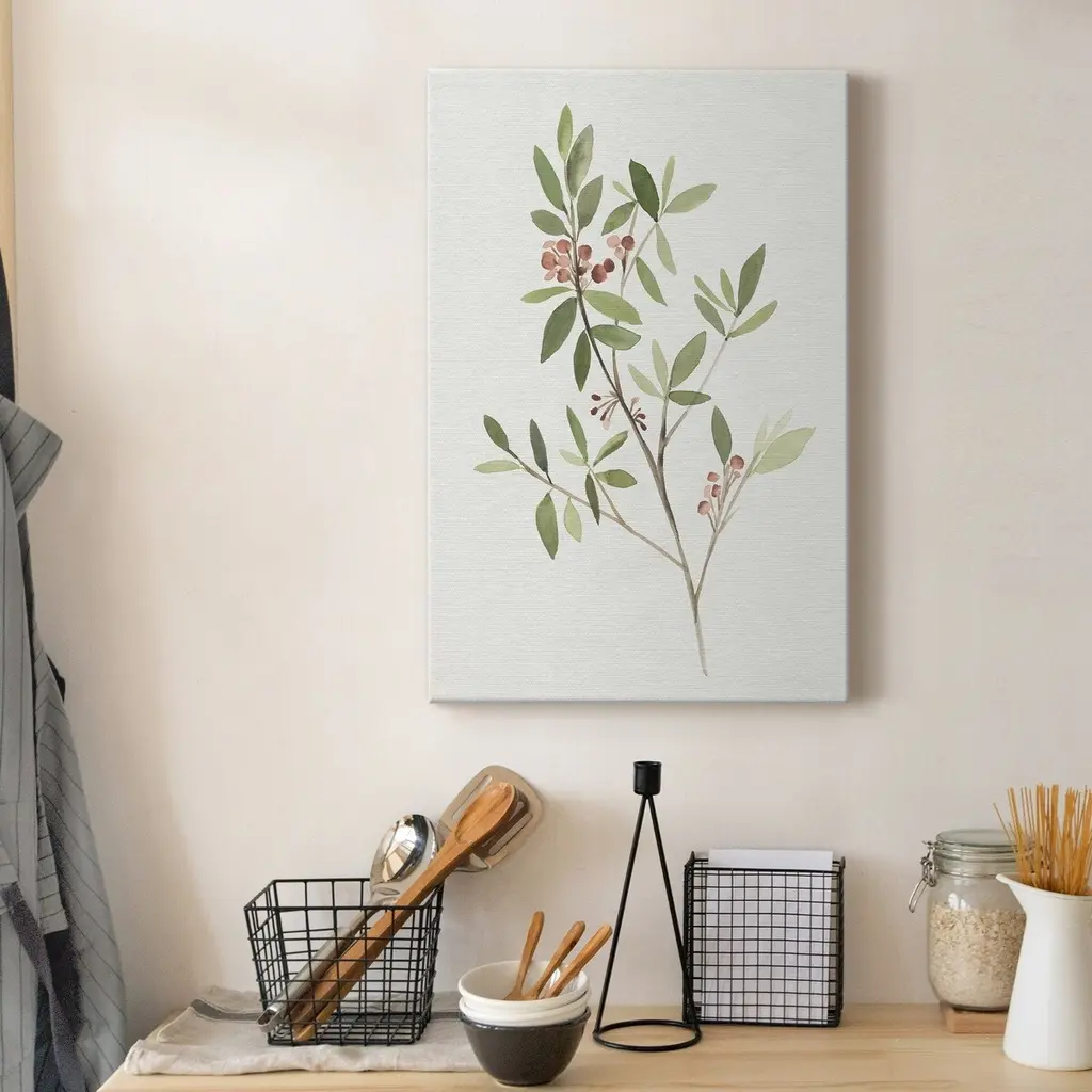 Single Sprig IV Premium Gallery Wrapped Canvas - Ready to Hang A premium hand stretched gallery wrapped canvas print created to last. Featuring a beveled a solid wood stretcher bar, each piece comes ready to hand 6 SIZES AVAILABLE 8''X12'' - Overall Size 12''X18'' - Overall Size 18''X27'' - Overall Size 24''x36'' - Overall Size 32''x48'' - Overall Size 40''x60'' - Overall Size Each piece is made to order. Built to Last Each piece comes ready to hang Solid wood stretcher Fade and Water resistant Made domestically