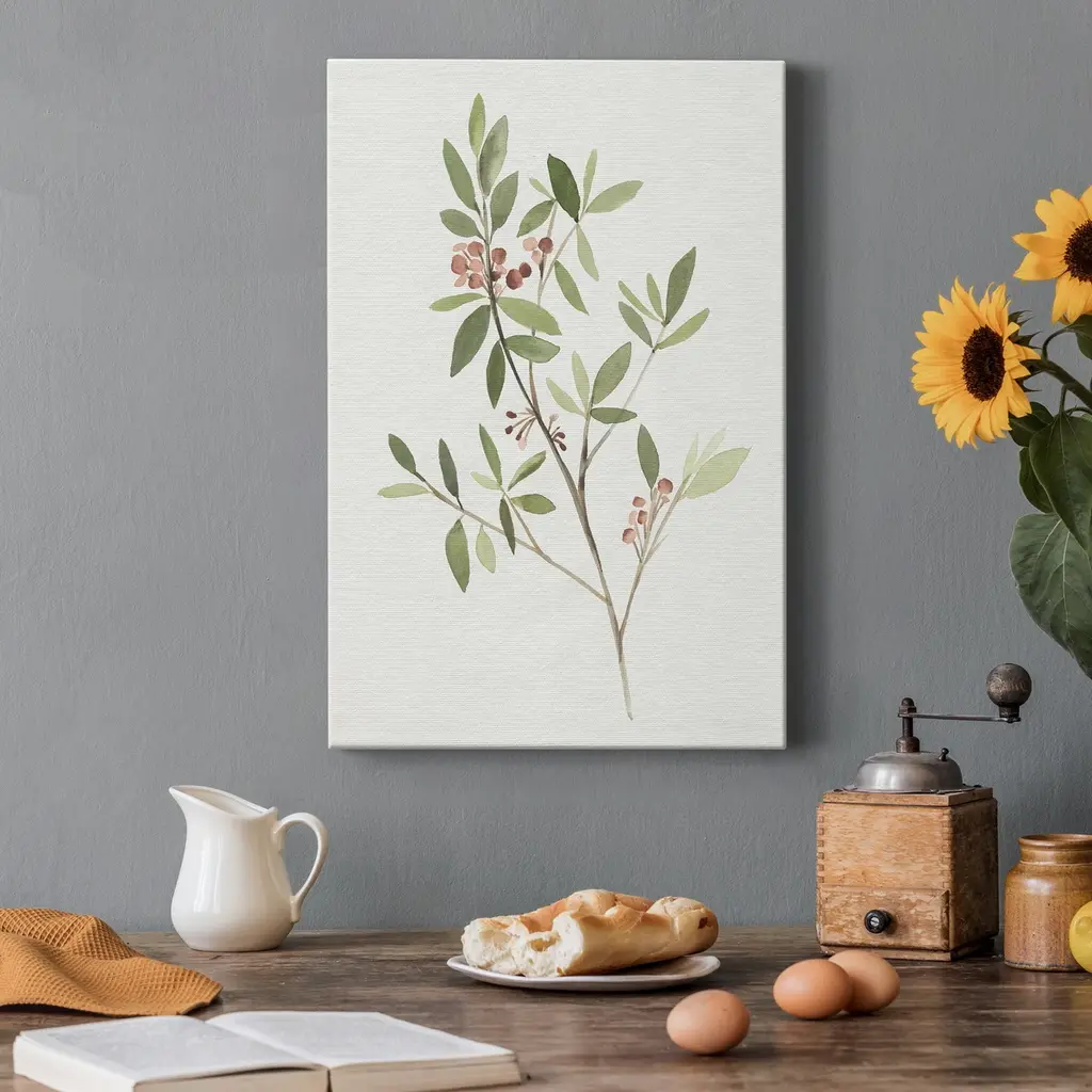 Single Sprig IV Premium Gallery Wrapped Canvas - Ready to Hang A premium hand stretched gallery wrapped canvas print created to last. Featuring a beveled a solid wood stretcher bar, each piece comes ready to hand 6 SIZES AVAILABLE 8''X12'' - Overall Size 12''X18'' - Overall Size 18''X27'' - Overall Size 24''x36'' - Overall Size 32''x48'' - Overall Size 40''x60'' - Overall Size Each piece is made to order. Built to Last Each piece comes ready to hang Solid wood stretcher Fade and Water resistant Made domestically