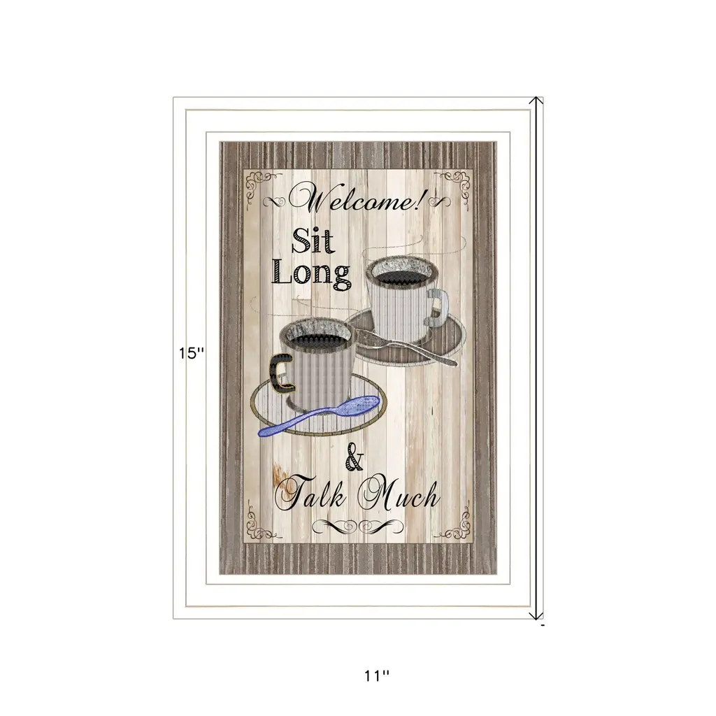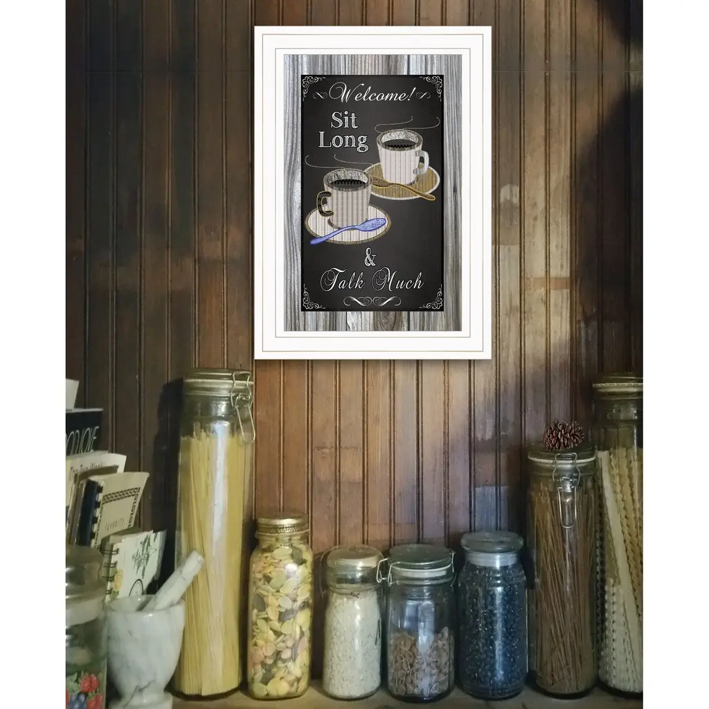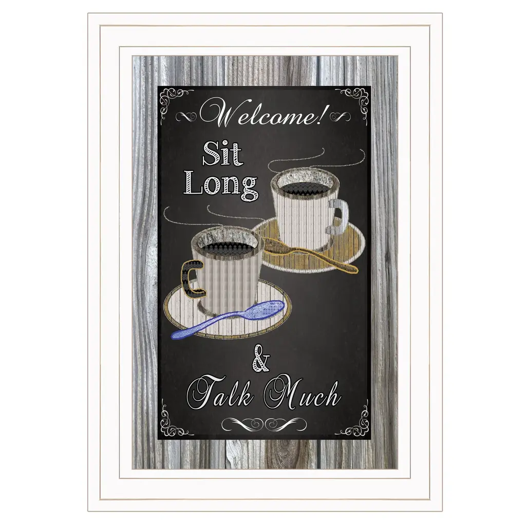 Add an air of fashion to your room and rejuvenate the space with this sit long talk much chalkboard framed 1 white framed print wall art. This print is a visual artistic expression that allows you to decorate your space in style. Reproduced for you on paper, this hanging decorative accent will be a trendy and fashionable way to dress your walls. Hang on your wall to add some up to date fashion and decoration. Utilize this opportunity to create a focal point in the room with this fabulous wall decor option. 15" H x 11" W x 1" D