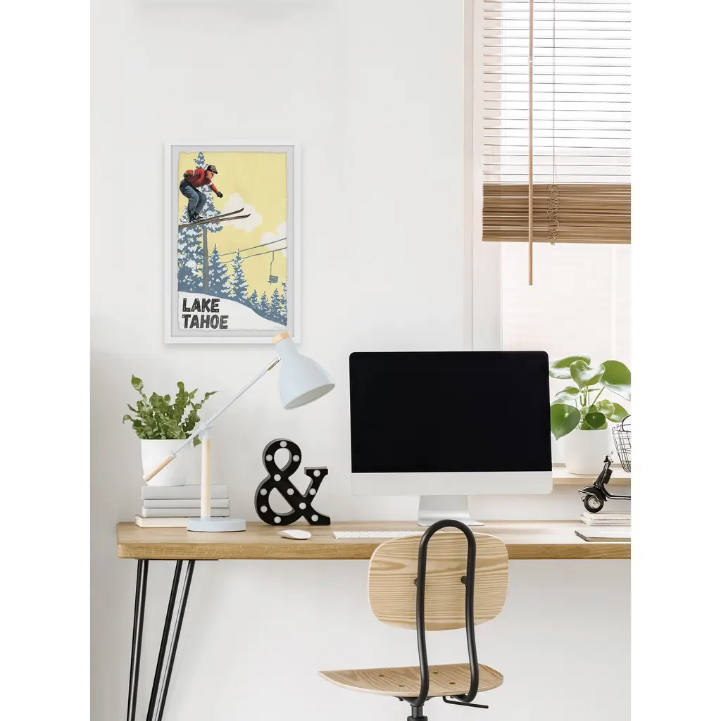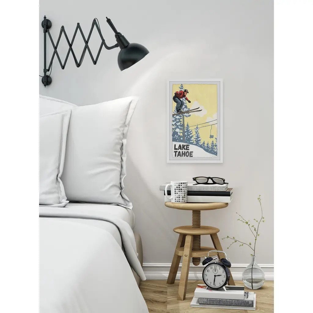 Bring adventures from the outdoors into your home with this print of a pro skier making his way down the slopes in Lake Tahoe. Proudly printed in the USA, this piece is printed on high quality archive paper and professionally hand-framed. With wall-mounting hooks included, this artful accent is ready to hang up as soon as it reaches your front door. • Top quality Giclee print on high resolution Archive Paper • Hand cut deckled edges • High quality durable non-warping frame • Finished under shatter resistant plexiglass • Arrives ready to hang • Includes a certificate of authenticity • Printed in the USA