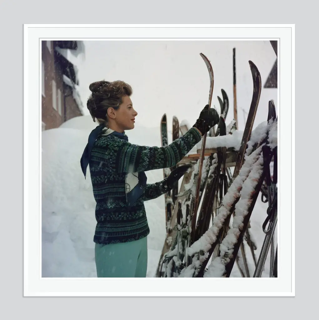 Skiing Princess 1961 Princess Luciana Pignatelli on a skiing holiday in Lech, Austria. Slim Aarons Slim Aarons was one of the twentieth century’s most prolific documenters of celebrity and socialite life. Over six decades, Aarons photographed some of the world’s most beautiful people in some of the globes most desirable destinations: jet-setting from Beverly Hills to Capri to the French Riviera, Aarons snapped the likes of the Kennedy family, Humphrey Bogart, Marilyn Monroe, and Grace Kelly. Paper size - 50x50" / 127x127 cm Approx frame size - 57x57" / 145x145 cm Stamped and issued by the Getty Images Archive London England (sole owners of the Slim Aarons Collection) made utilising the original transparency c print Framed in white solid wood frame with mount and glazing - ready to hang Ships securely from London Printed later