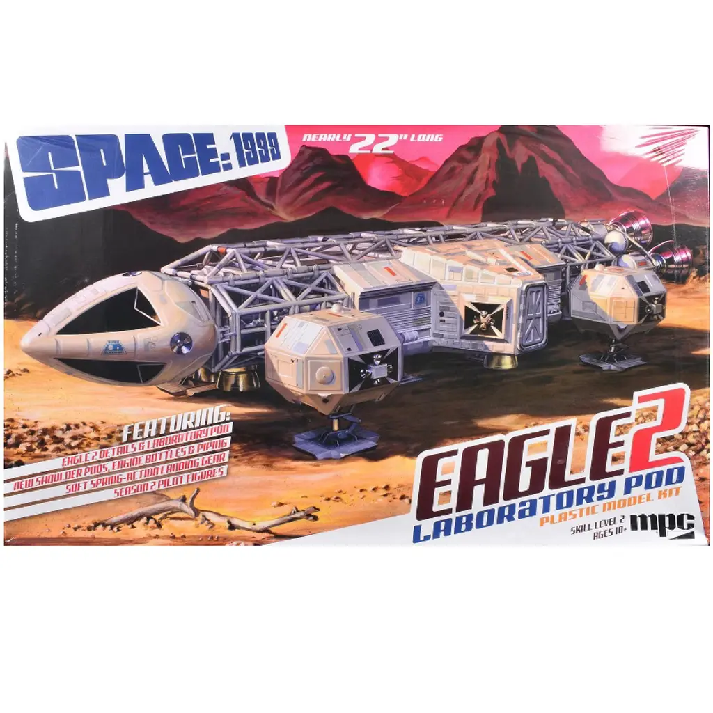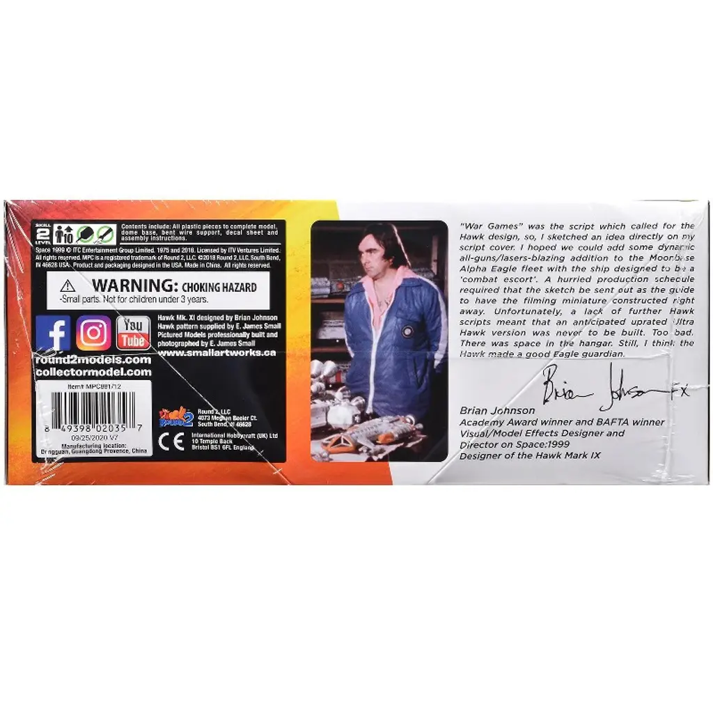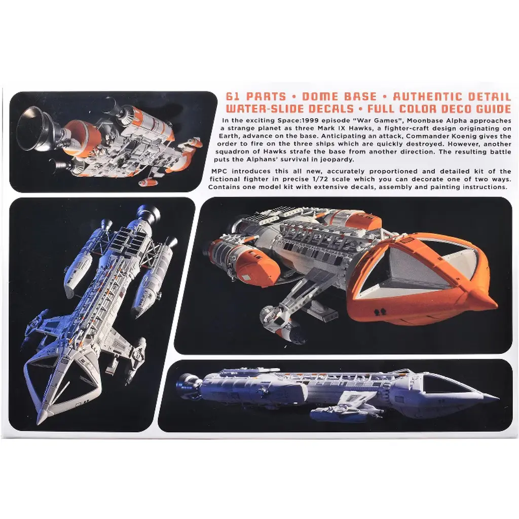 Brand new plastic model kit of Hawk Mark IX Spacecraft "Space: 1999" (1975-1977) TV Series (Skill 2) 1/72 plastic model kit by MPC. Brand new box. Colorful decal artwork. Vintage style packaging. Officially licensed product. Contains 61 detailed parts. Researched for authenticity. Includes dome base for display. Based on miniature from the TV series. Paint and cement required (not included). Manufacturer's original unopened packaging. Assembled model is approximately 10 inches long. Parts molded in WHITE, unless otherwise indicated.