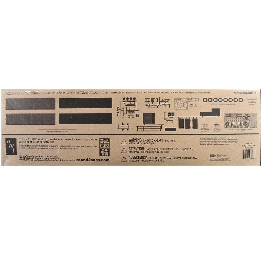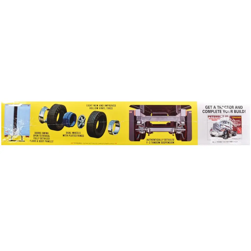 Brand new 1/25 scale plastic model kit of Fruehauf FB Beaded Panel Van Trailer (Skill 3) 1/25 plastic model kit by AMT. Brand new box. Colorful decal artwork. Vintage style packaging. Officially licensed product. Chrome plated small parts. Contains 142 detailed parts. Dual wheels with plated rings. Black vinyl tires and metal axles. Eight new and improved hollow vinyl tires. Assembled kit builds to over 19 inches long. Paint and cement required (not included). Manufacturer's original unopened packaging. Authentically detailed F-2 tandem suspension. Movable select-a-point tandem sliding suspension. Parts molded in WHITE, unless otherwise indicated. Doors swing open to reveal fully detailed floor and body panels. 2-position support assembly to build it raised and ready to roll, or lowered for static display.