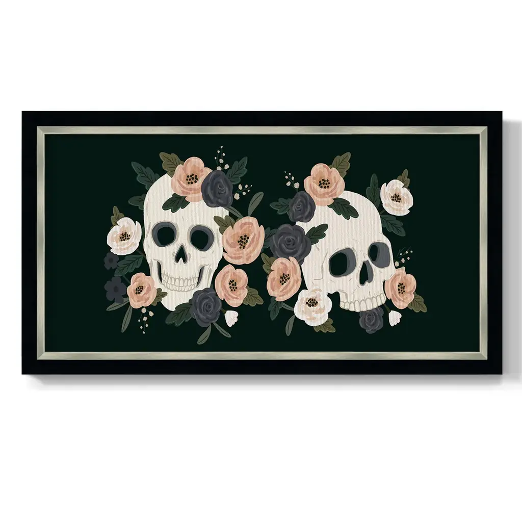 Skull & Snake Collection D Premium Framed Canvas- Ready to Hang A Premium Framed Canvas created to last. Framed in distressed wood and available in an array of sizes and colors Featuring a beveled a solid wood stretcher bar, each piece comes ready to hand 3 SIZES AVAILABLE 21''X37'' - Overall Size 25''X45'' - Overall Size 29''x53'' - Overall Size Each piece is made to order. Each piece comes with hanging hardware. Made in the USA Ready to Hang Giclee Paper Print Acrylic Glass Beveled Matt Board