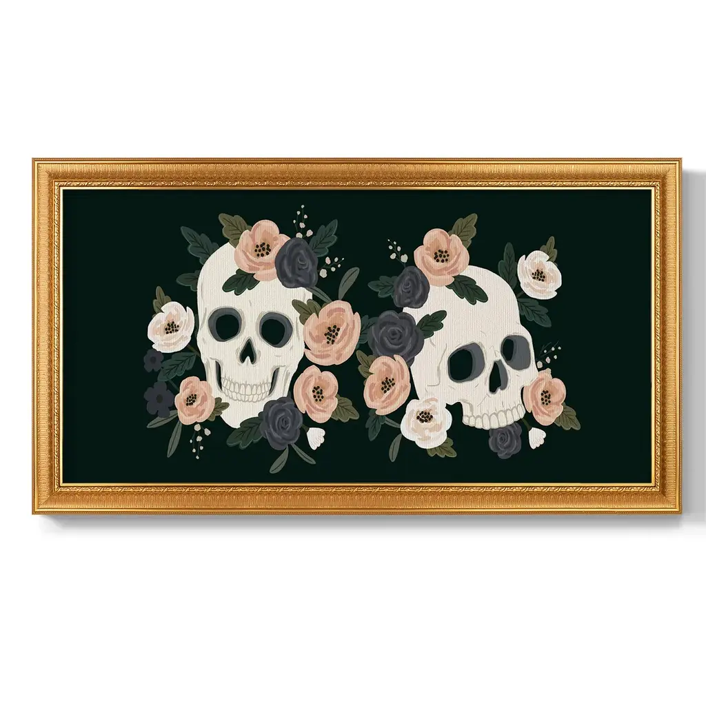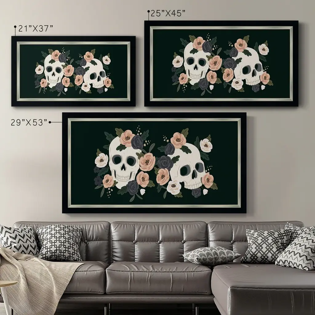 Skull & Snake Collection D Premium Framed Canvas- Ready to Hang A Premium Framed Canvas created to last. Framed in distressed wood and available in an array of sizes and colors Featuring a beveled a solid wood stretcher bar, each piece comes ready to hand 3 SIZES AVAILABLE 21''X37'' - Overall Size 25''X45'' - Overall Size 29''x53'' - Overall Size Each piece is made to order. Each piece comes with hanging hardware. Made in the USA Ready to Hang Giclee Paper Print Acrylic Glass Beveled Matt Board
