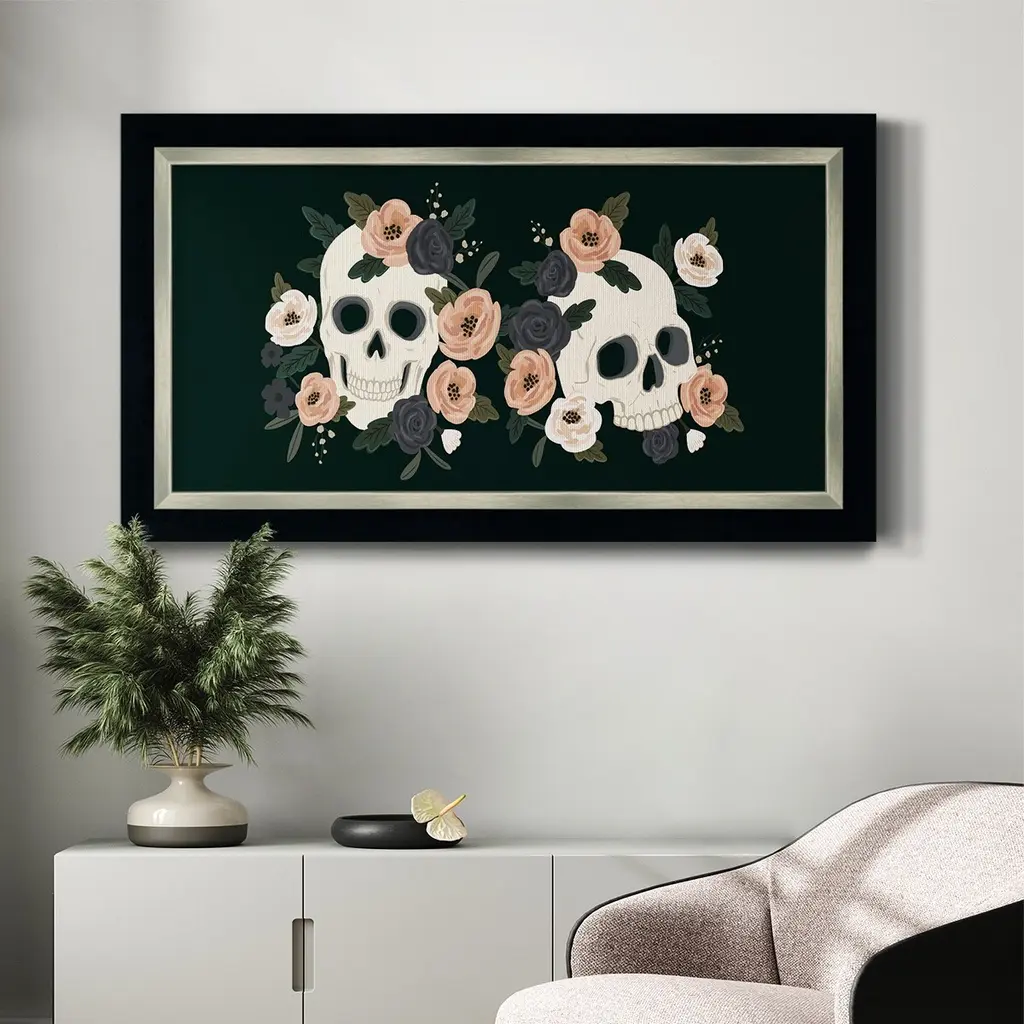 Skull & Snake Collection D Premium Framed Canvas- Ready to Hang A Premium Framed Canvas created to last. Framed in distressed wood and available in an array of sizes and colors Featuring a beveled a solid wood stretcher bar, each piece comes ready to hand 3 SIZES AVAILABLE 21''X37'' - Overall Size 25''X45'' - Overall Size 29''x53'' - Overall Size Each piece is made to order. Each piece comes with hanging hardware. Made in the USA Ready to Hang Giclee Paper Print Acrylic Glass Beveled Matt Board