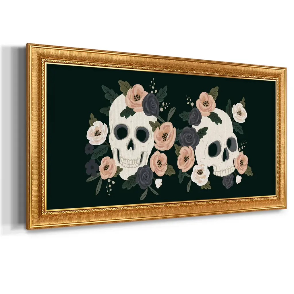 Skull & Snake Collection D Premium Framed Canvas- Ready to Hang A Premium Framed Canvas created to last. Framed in distressed wood and available in an array of sizes and colors Featuring a beveled a solid wood stretcher bar, each piece comes ready to hand 3 SIZES AVAILABLE 21''X37'' - Overall Size 25''X45'' - Overall Size 29''x53'' - Overall Size Each piece is made to order. Each piece comes with hanging hardware. Made in the USA Ready to Hang Giclee Paper Print Acrylic Glass Beveled Matt Board