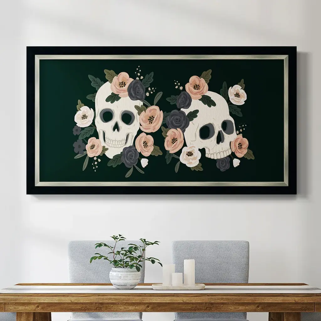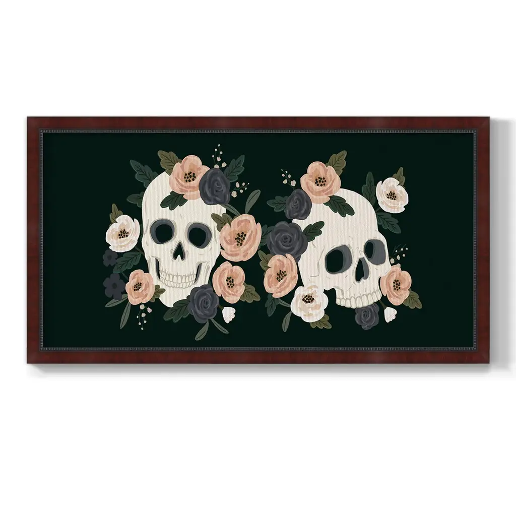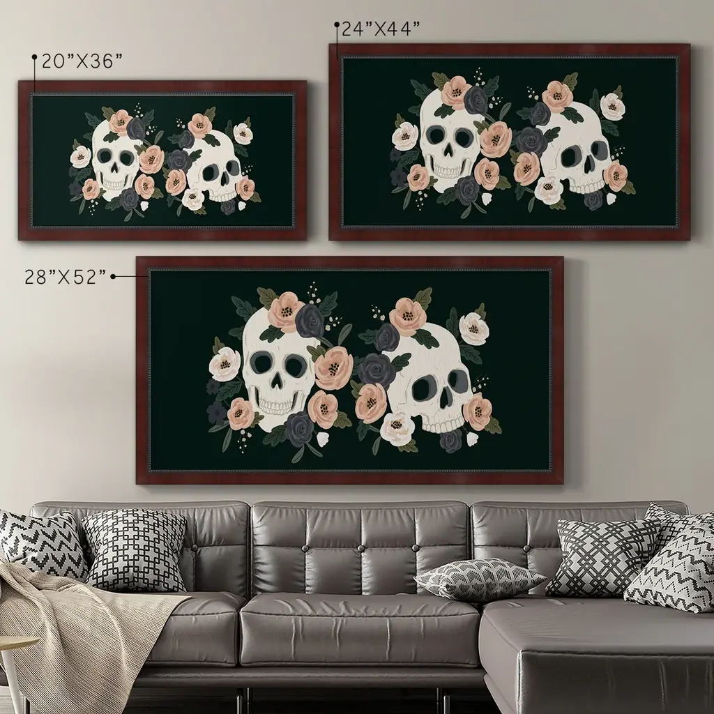 Skull & Snake Collection D Premium Framed Canvas- Ready to Hang A Premium Framed Canvas created to last. Framed in distressed wood and available in an array of sizes and colors Featuring a beveled a solid wood stretcher bar, each piece comes ready to hand 3 SIZES AVAILABLE 21''X37'' - Overall Size 25''X45'' - Overall Size 29''x53'' - Overall Size Each piece is made to order. Each piece comes with hanging hardware. Made in the USA Ready to Hang Giclee Paper Print Acrylic Glass Beveled Matt Board