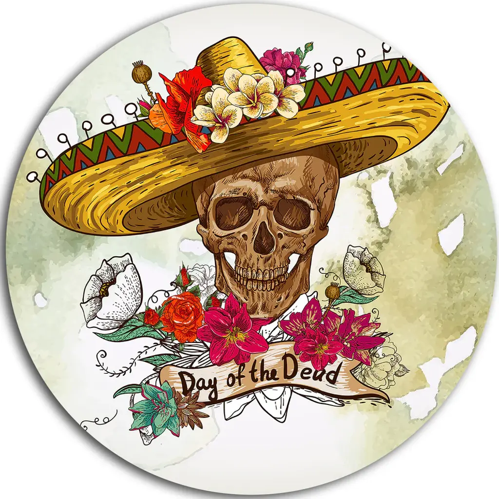 Bring contemporary abstraction to your home with this large 28W x 36H Metal Wall Art. This Skull in Sombrero with Flowers Metal Artwork makes it the focal point of any room or office. - White gloss coating ensures colors are extra vibrant with light reflection.- Aluminum grade sheet metal with 1 inch mounting frame on the back giving the illusion that the artwork is floating on the wall..- Mounting brackets are included along with instructions.- High quality digital images are created directly into a glossy aluminum panel producing a stunning and captivating print into the glossy finish of the metal.- Water, fire and scratch resistant HD aluminum panels.- Looks better than any photo paper and guaranteed to last at least 20 years- Easy to clean with a microfiber cloth. Colors are far superior to regular canvas art. - Easy to hang