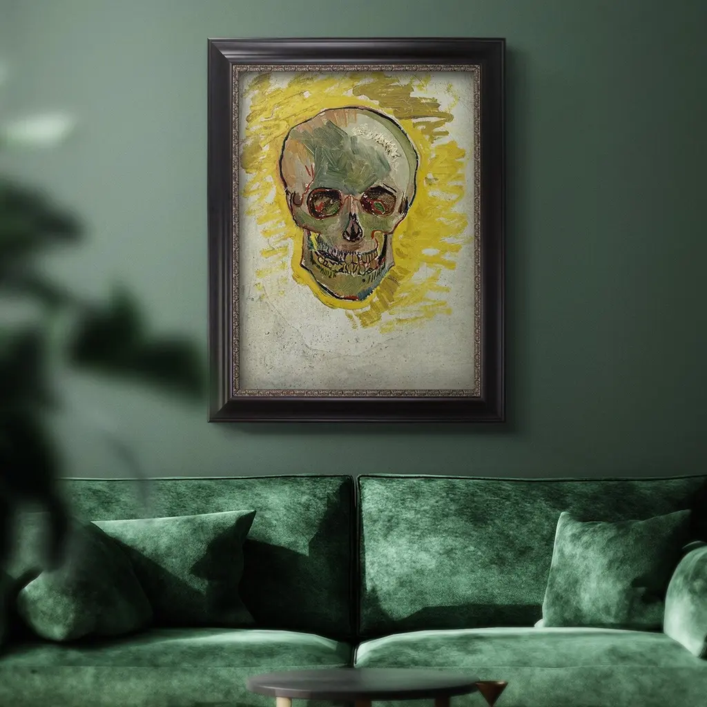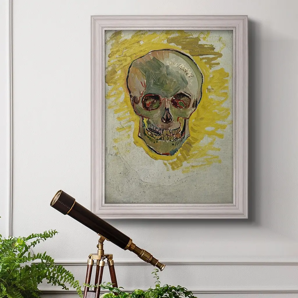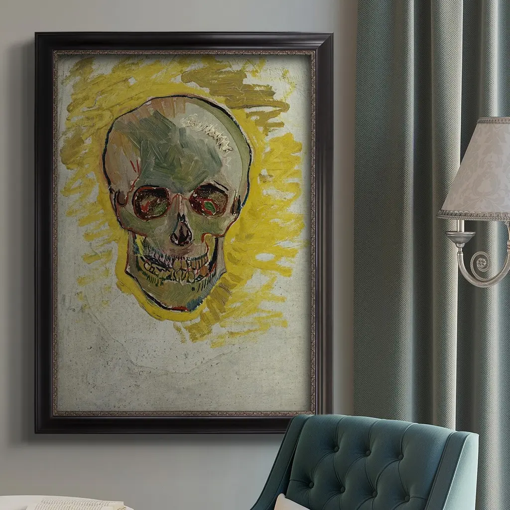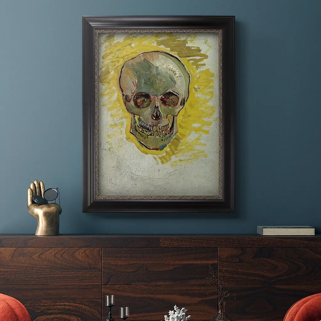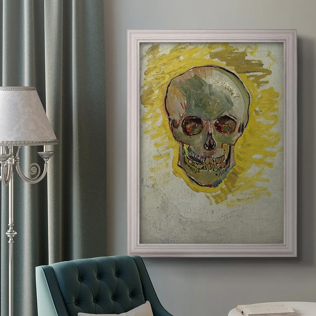 SKULL Premium Framed Canvas- Ready to Hang A Premium Framed Canvas created to last. Framed in distressed wood and available in an array of sizes and colors Featuring a beveled a solid wood stretcher bar, each piece comes ready to hand 3 SIZES AVAILABLE 16''X20'' - Overall Size 18'X27'' - Overall Size 24''x36'' - Overall Size Each piece is made to order. Each piece comes with hanging hardware. Made in the USA Ready to Hang Giclee Paper Print Acrylic Glass Beveled Matt Board