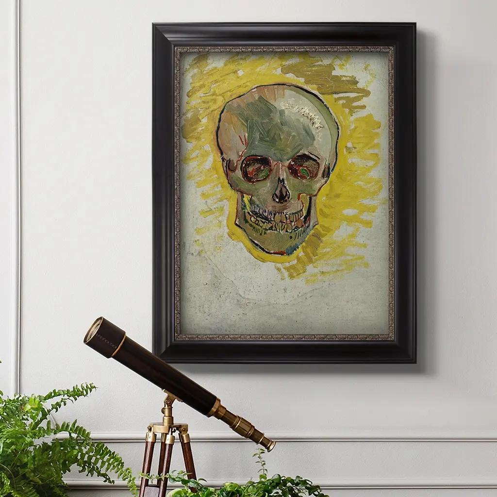 SKULL Premium Framed Canvas- Ready to Hang A Premium Framed Canvas created to last. Framed in distressed wood and available in an array of sizes and colors Featuring a beveled a solid wood stretcher bar, each piece comes ready to hand 3 SIZES AVAILABLE 16''X20'' - Overall Size 18'X27'' - Overall Size 24''x36'' - Overall Size Each piece is made to order. Each piece comes with hanging hardware. Made in the USA Ready to Hang Giclee Paper Print Acrylic Glass Beveled Matt Board