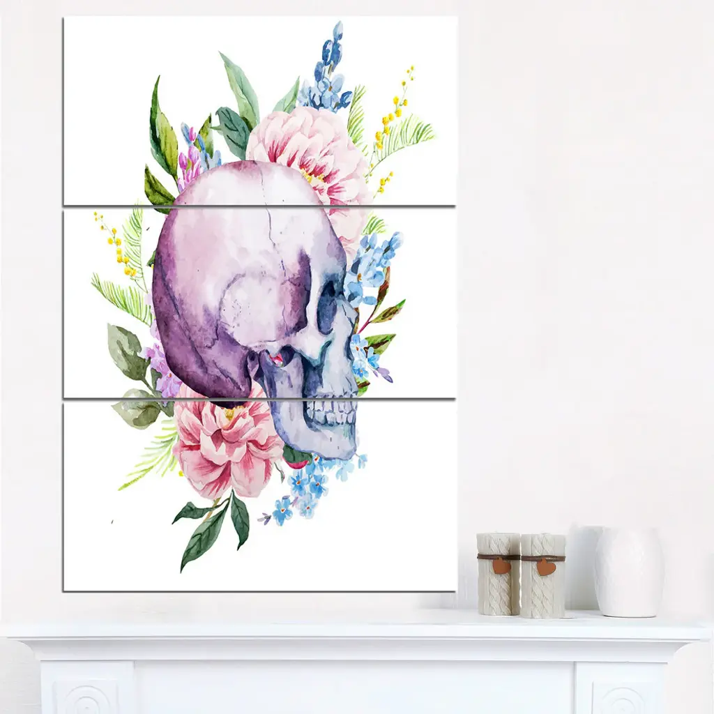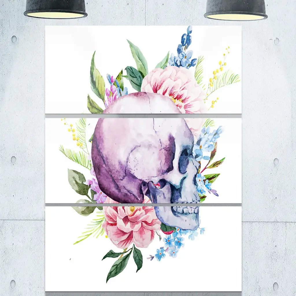 "Skull With Flower Borders" Digital Metal Wall Art, 3 Panels, 28"x36"