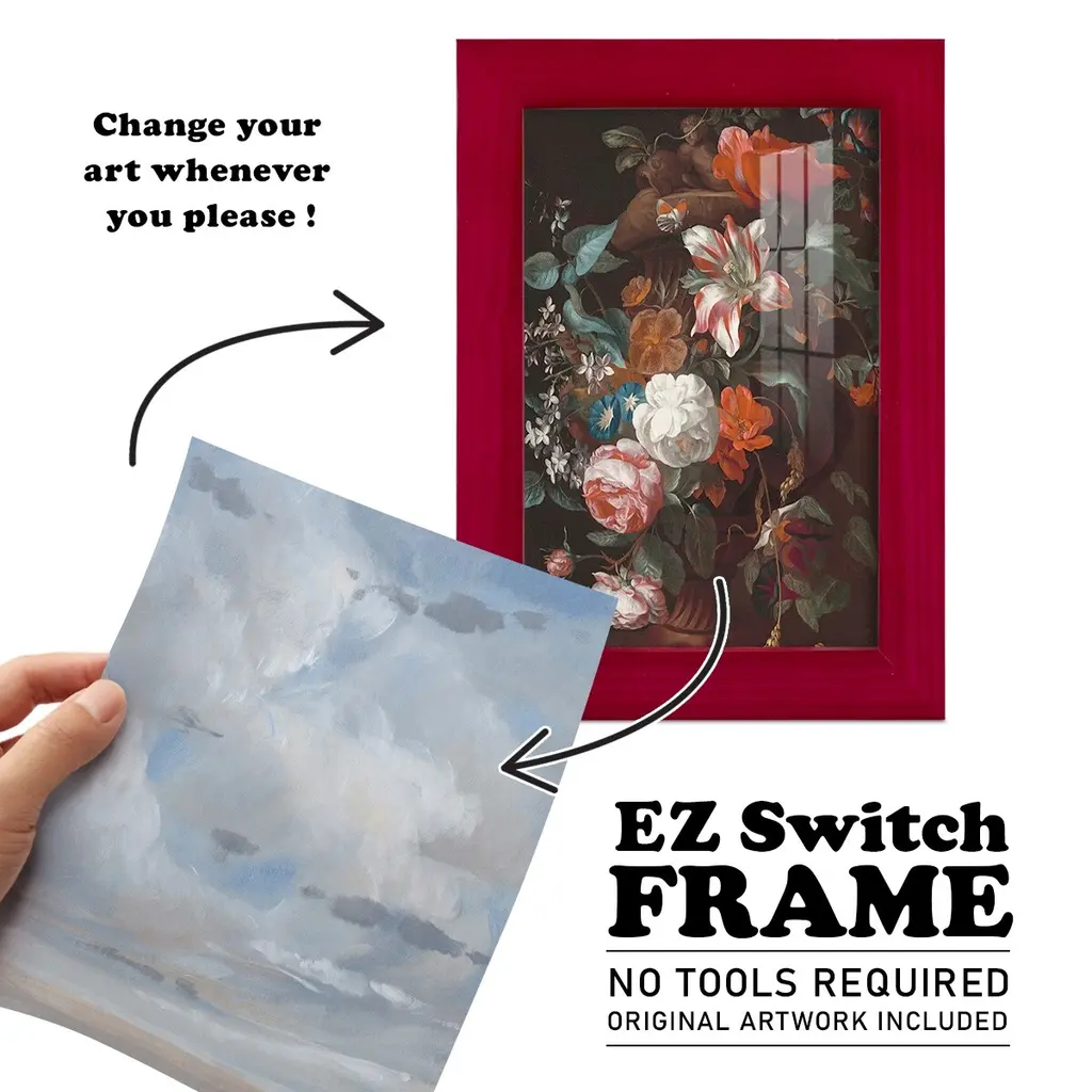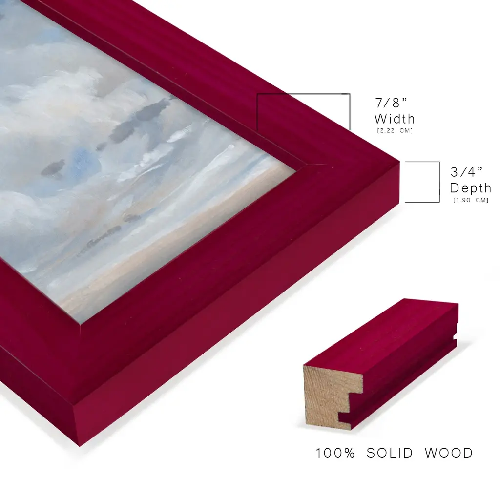 Sky Blue II -EZ SWITCH Framed Print w/glass-Cherry Red A delightful, framed print. Featuring a solid wood frame with real wood glass. This premium print is giclee quality. In addition, every frame features a removable back and table top stand. This allows you to change your art in the future or to just stand the art on a table for a new look. We are sure you'll enjoy our new series of EZ SWITCH Framed Art. Solid Wood Frame Real Glass Removable / Replaceable Art Built in Tabletop Stand Sizes range from 4x6 up to 12x15 - buy just one or pair them up as sets as you see fit.