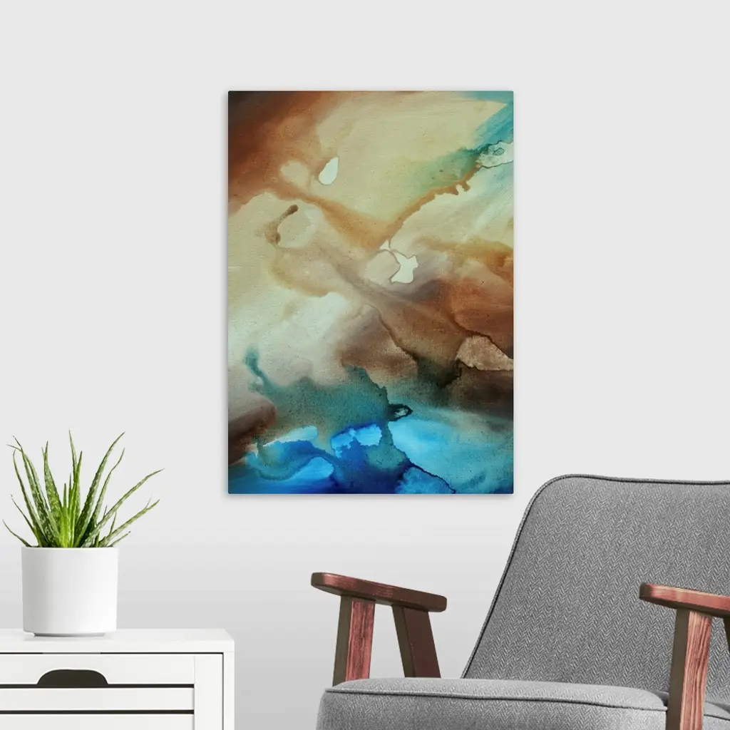 This is a Huge vibrant, colorful and bold Original Abstract painting in MADART's uniquely distinct contemporary style. The fluid colors of blue, chocolate and cream blend together to create drama and boldness in this beautiful, stunning artwork that will compliment
