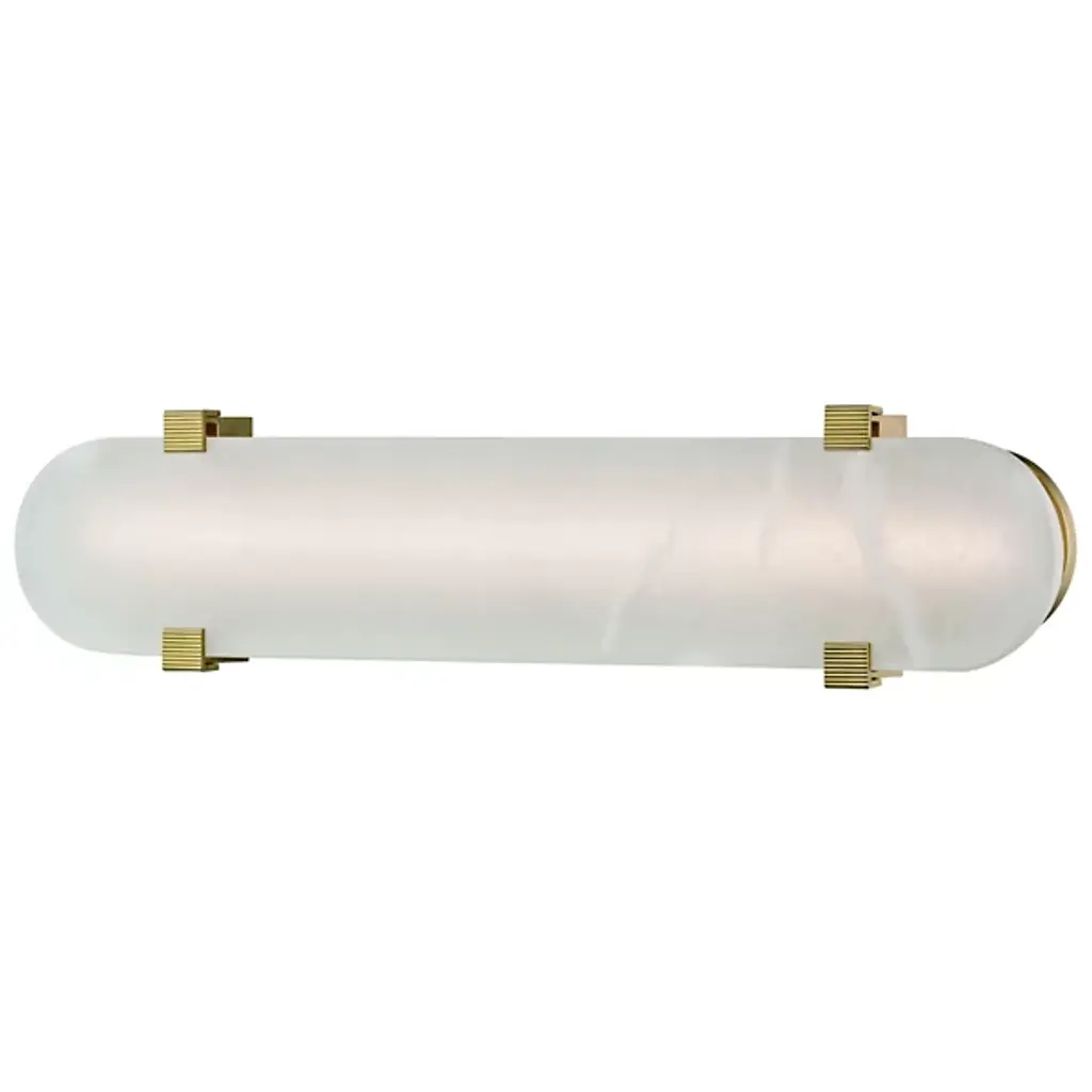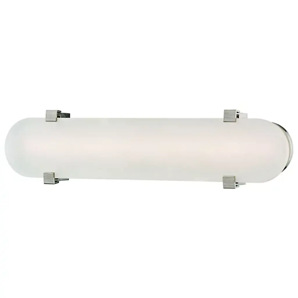 The Hudson Valley Skylar LED Vanity Light has a subtle nautical aesthetic with its rounded shape and exposed hardware over a glass shade. Simple and utility driven, concealed inside the fixture are energy efficient LED modules, creating a lit atmosphere using less energy than traditional bulbs.