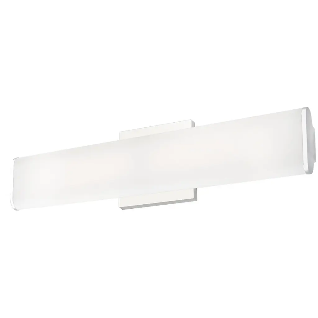 Truly contemporary, the Oxygen Lighting Skyline Vanity Light features a lit tube of acrylic mounted on a metallic backplate, finished with steel end caps. Minimal while still making a statement, the unadorned design will transform any bathroom or vanity into a more modern space.