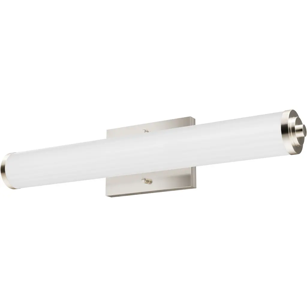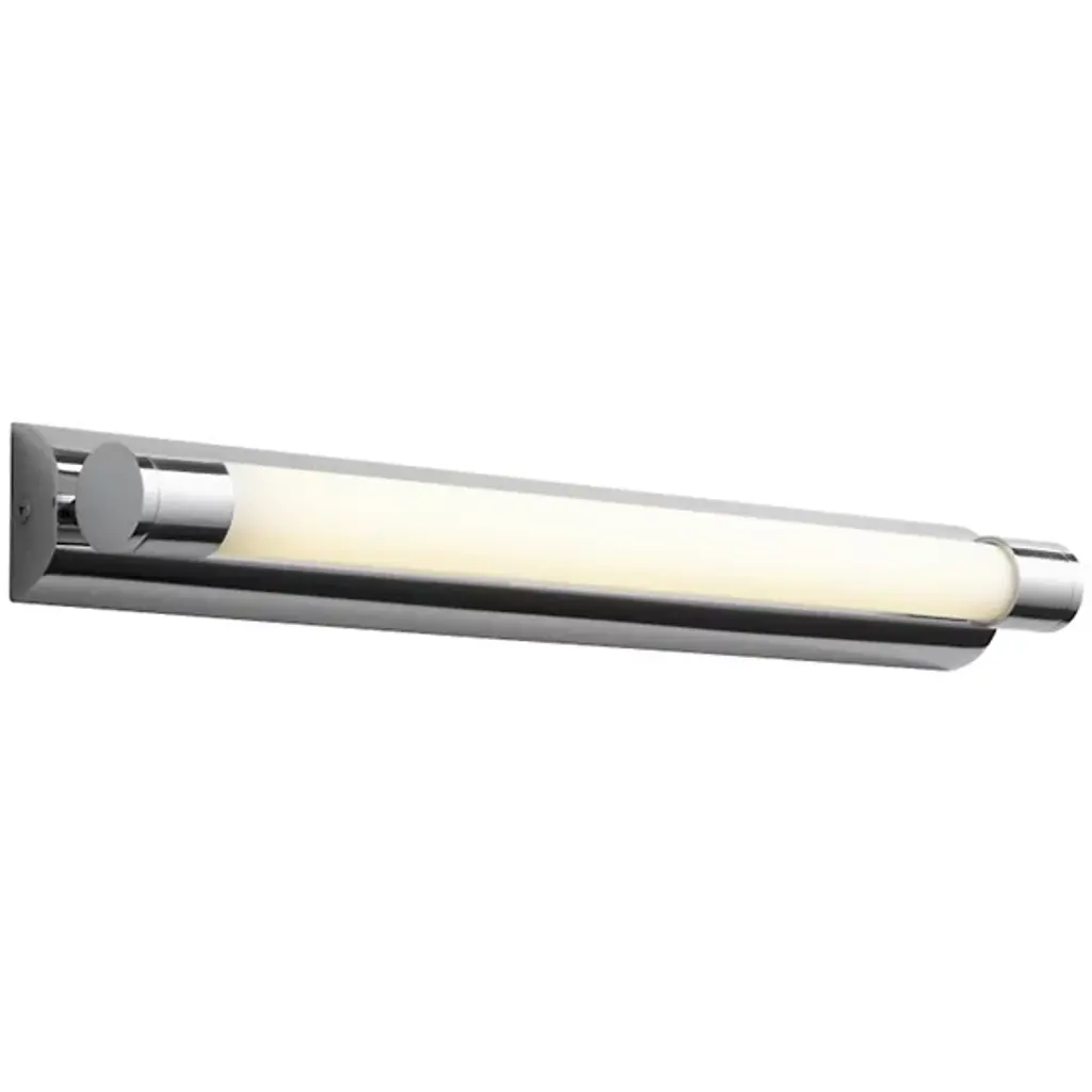 Truly contemporary, the Oxygen Lighting Skyline Vanity Light features a lit tube of acrylic mounted on a metallic backplate, finished with steel end caps. Minimal while still making a statement, the unadorned design will transform any bathroom or vanity into a more modern space.