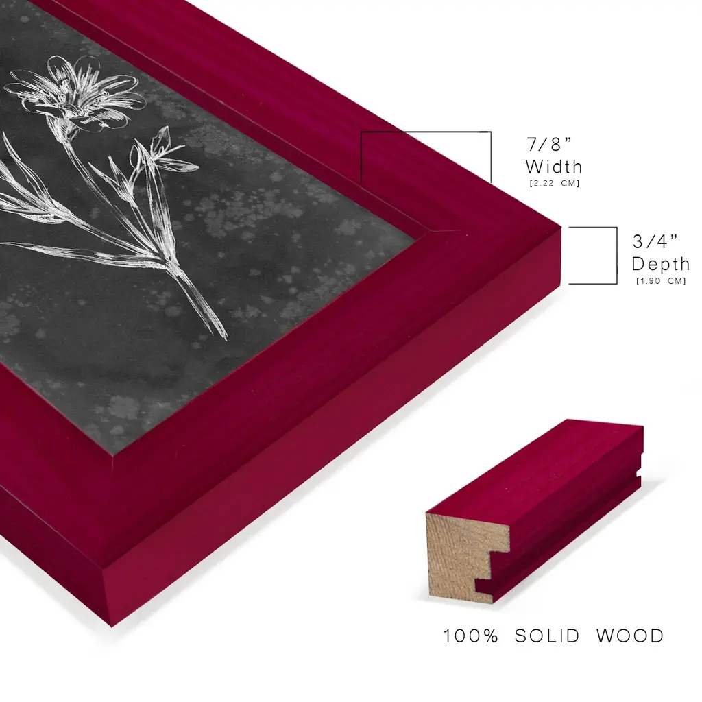 Slate Floral IV -EZ SWITCH Framed Print w/glass-Cherry Red A delightful, framed print. Featuring a solid wood frame with real wood glass. This premium print is giclee quality. In addition, every frame features a removable back and table top stand. This allows you to change your art in the future or to just stand the art on a table for a new look. We are sure you'll enjoy our new series of EZ SWITCH Framed Art. Solid Wood Frame Real Glass Removable / Replaceable Art Built in Tabletop Stand Sizes range from 4x6 up to 12x15 - buy just one or pair them up as sets as you see fit.