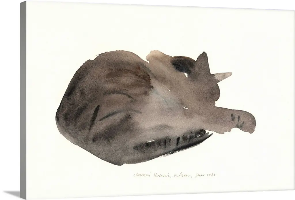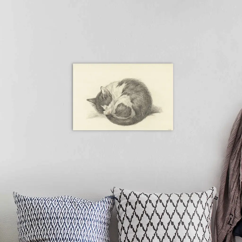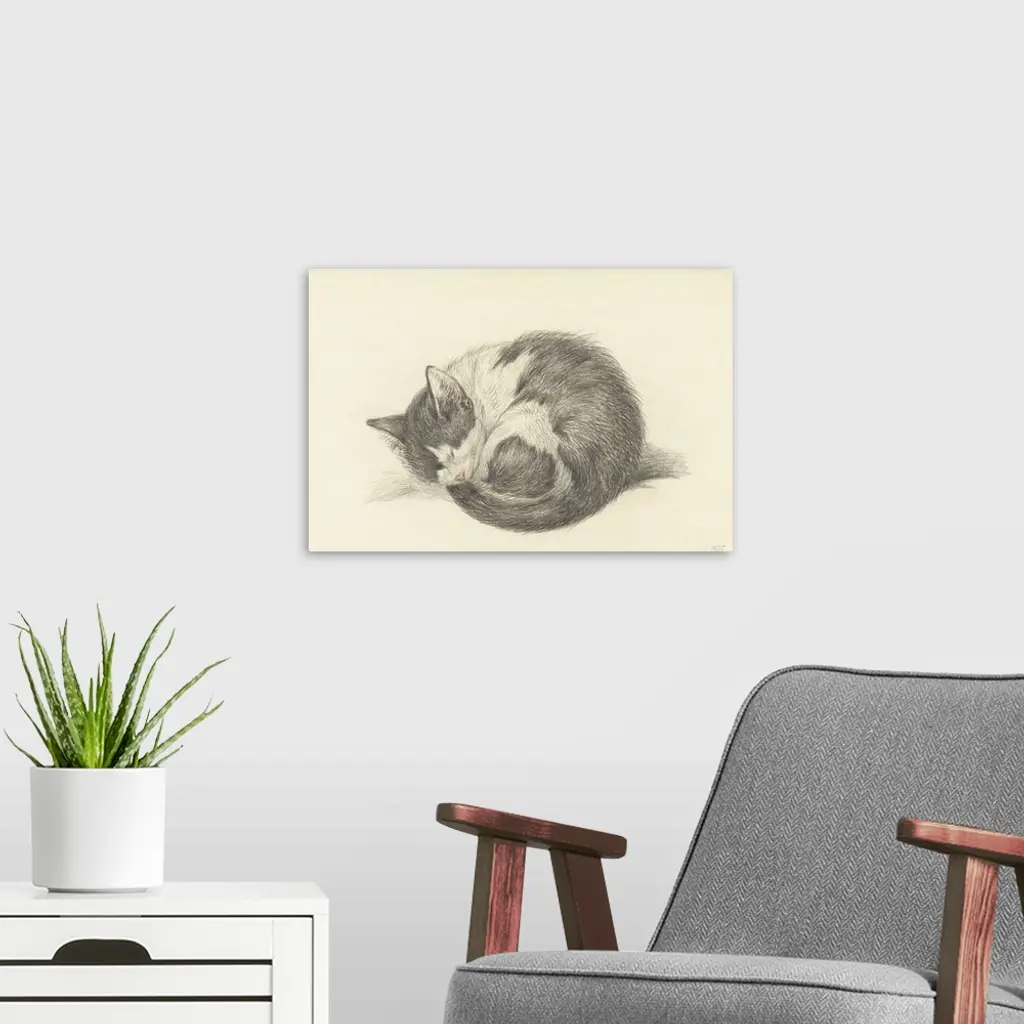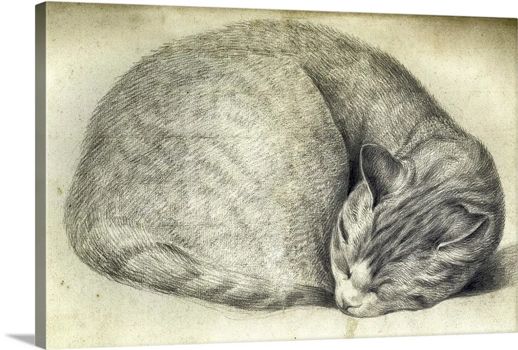 Sleeping Cat Rolled into a Ball, by Jean Bernard, 1825, Dutch chalk drawing.