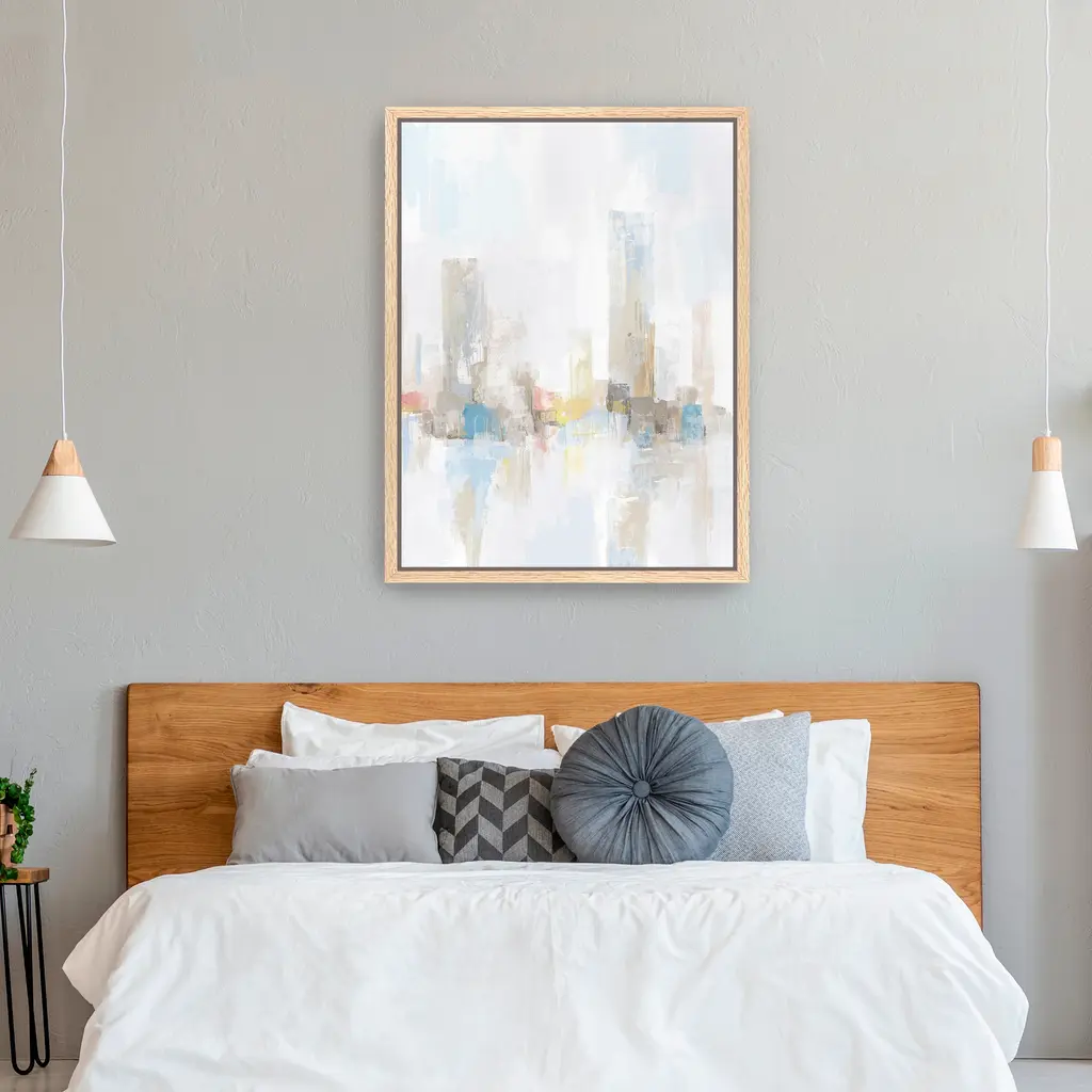 Light and movement blend effortlessly in this abstract canvas, bringing a soothing and sophisticated touch to any room. Our Gallery Wrap Canvas Prints are proudly assembled with high quality materials in California, USA. Each piece is printed on a thick, archival grade canvas using Giclee technology. It is then hand-stretched by our experienced artisans over solid wood bars, which will not warp over time. The final product is a piece personally crafted for you to confidently display on your wall. Care and Assembly: Ensure that the location of your piece has little to no exposure to heat, sunlight, and moisture. Wipe clean, only if needed. Each piece includes a sawtooth hanger to hang on your wall vertically.