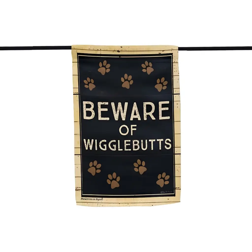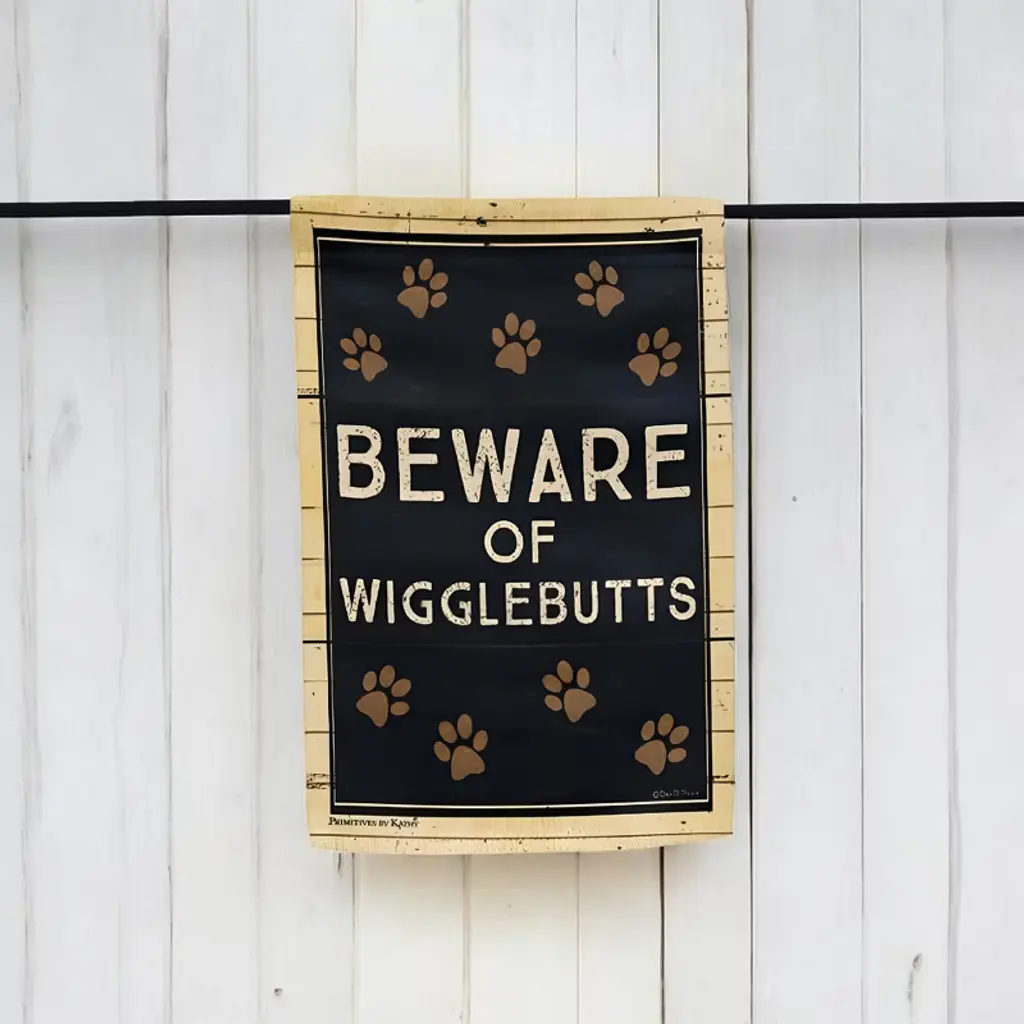 Slickblue "Beware Of Wigglebutts" Garden Flag – Weather-resistant, Double-sided With Paw Prints, 18" X 12"