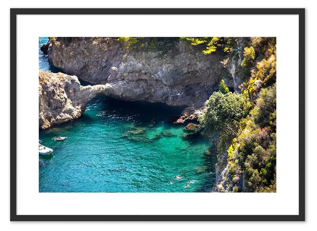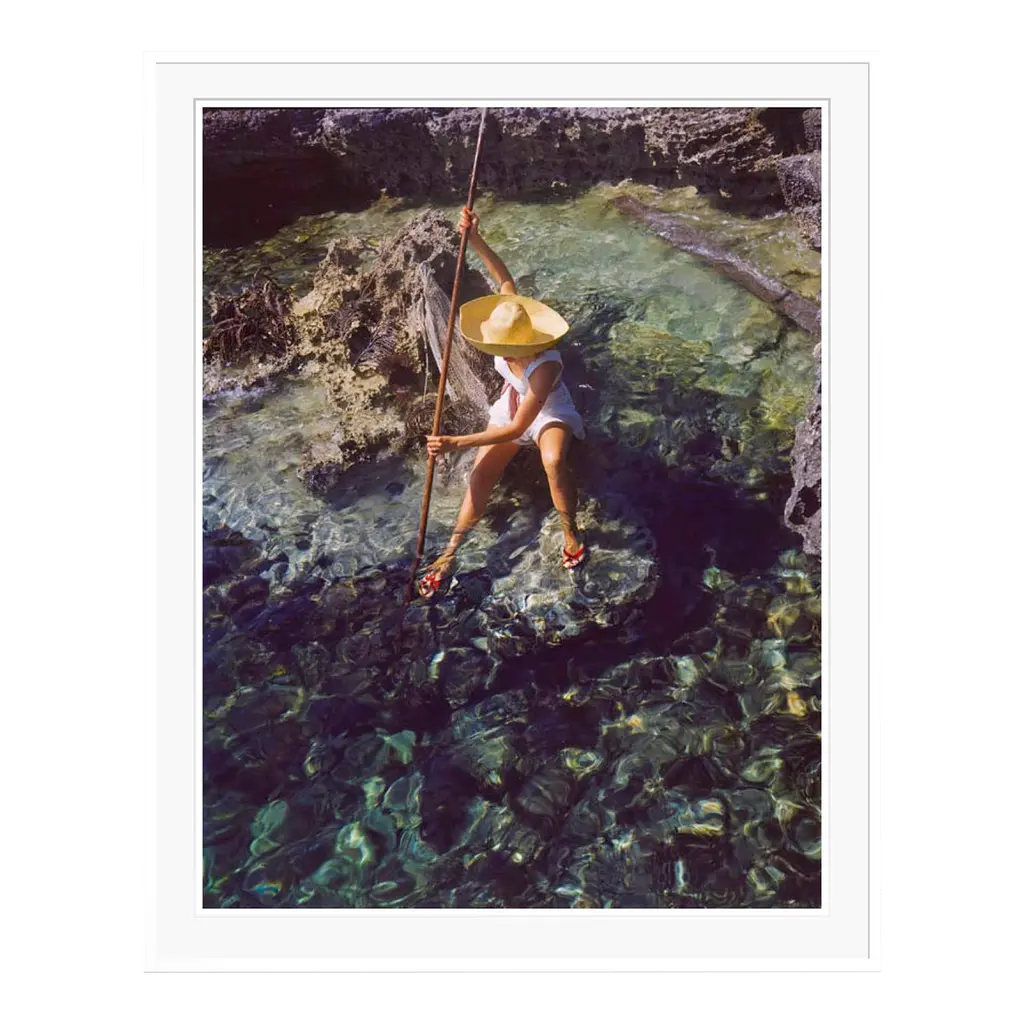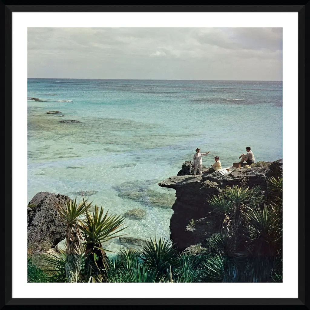 Slim Aarons described his photos as depicting “attractive people doing attractive things in attractive places.” Case in point: this 1957 image showing a group of friends picnicking on a rocky Bermuda coastline. Printed on archival paper, the photo arrives matted, framed, and ready to hang.