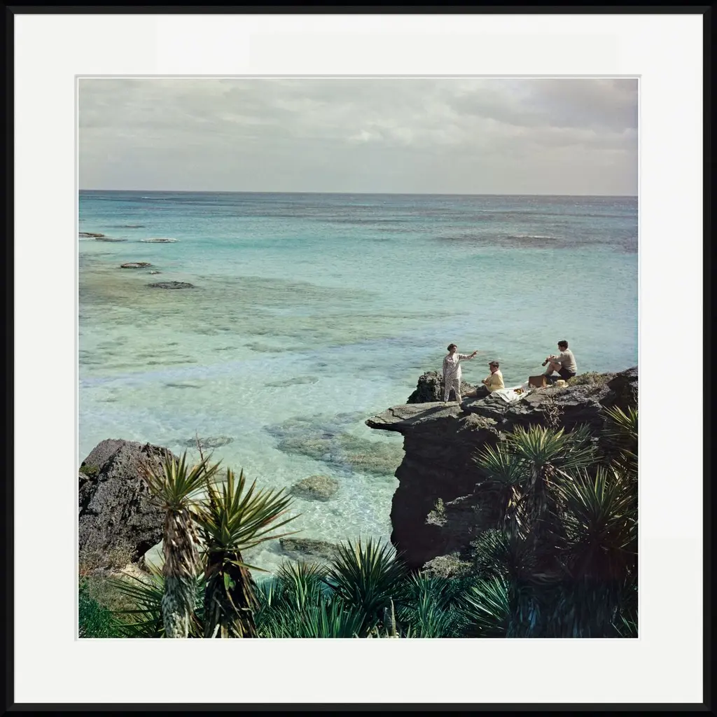 Slim Aarons described his photos as depicting “attractive people doing attractive things in attractive places.” Case in point: this 1957 image showing a group of friends picnicking on a rocky Bermuda coastline. Printed on archival paper, the photo arrives matted, framed, and ready to hang.