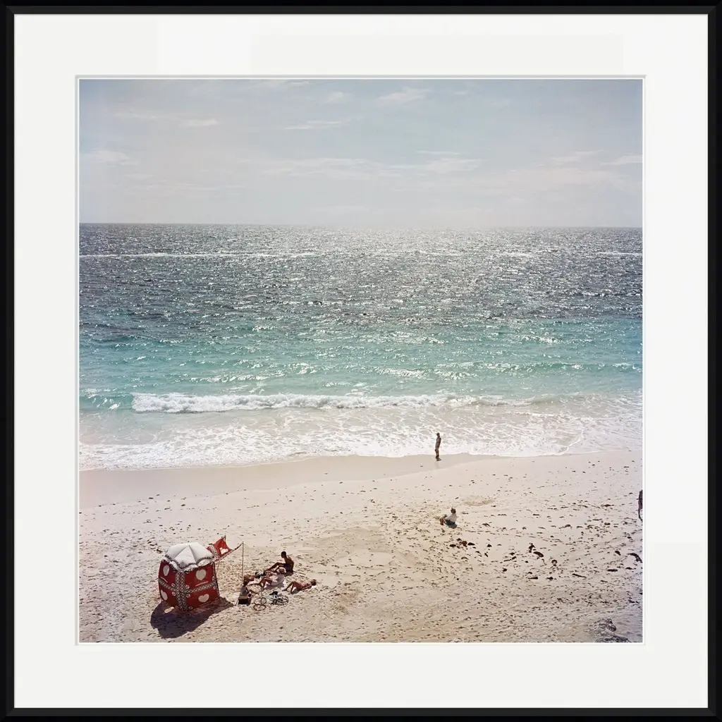 Slim Aarons described his photos as depicting “attractive people doing attractive things in attractive places.” Case in point: this 1957 image showing a family on the beach of Andros Island in the Bahamas. Printed on archival paper, the photo arrives matted, framed, and ready to hang.