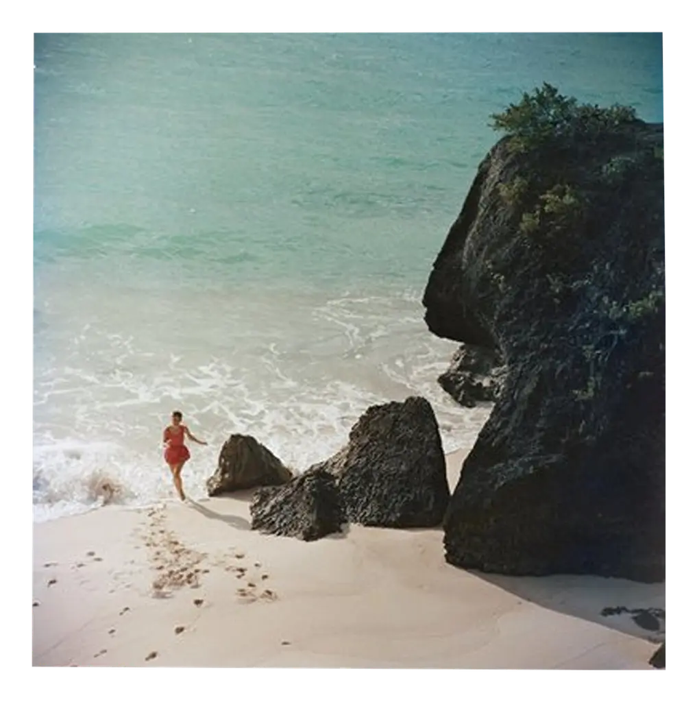 Taken in 1957, this image from the legendary Slim Aarons captures a woman enjoying a carefree day on a Bermuda beach. Printed on archival paper, it arrives matted, framed, and ready to hang.