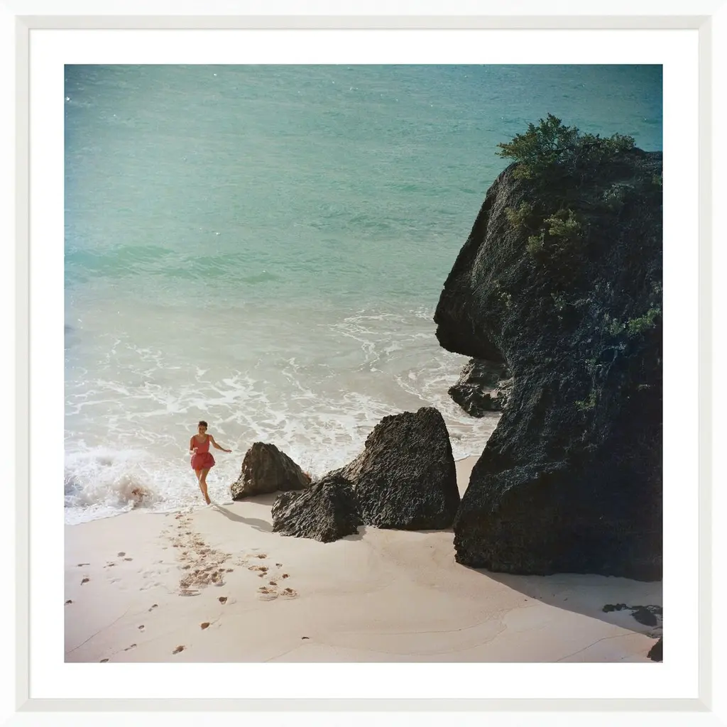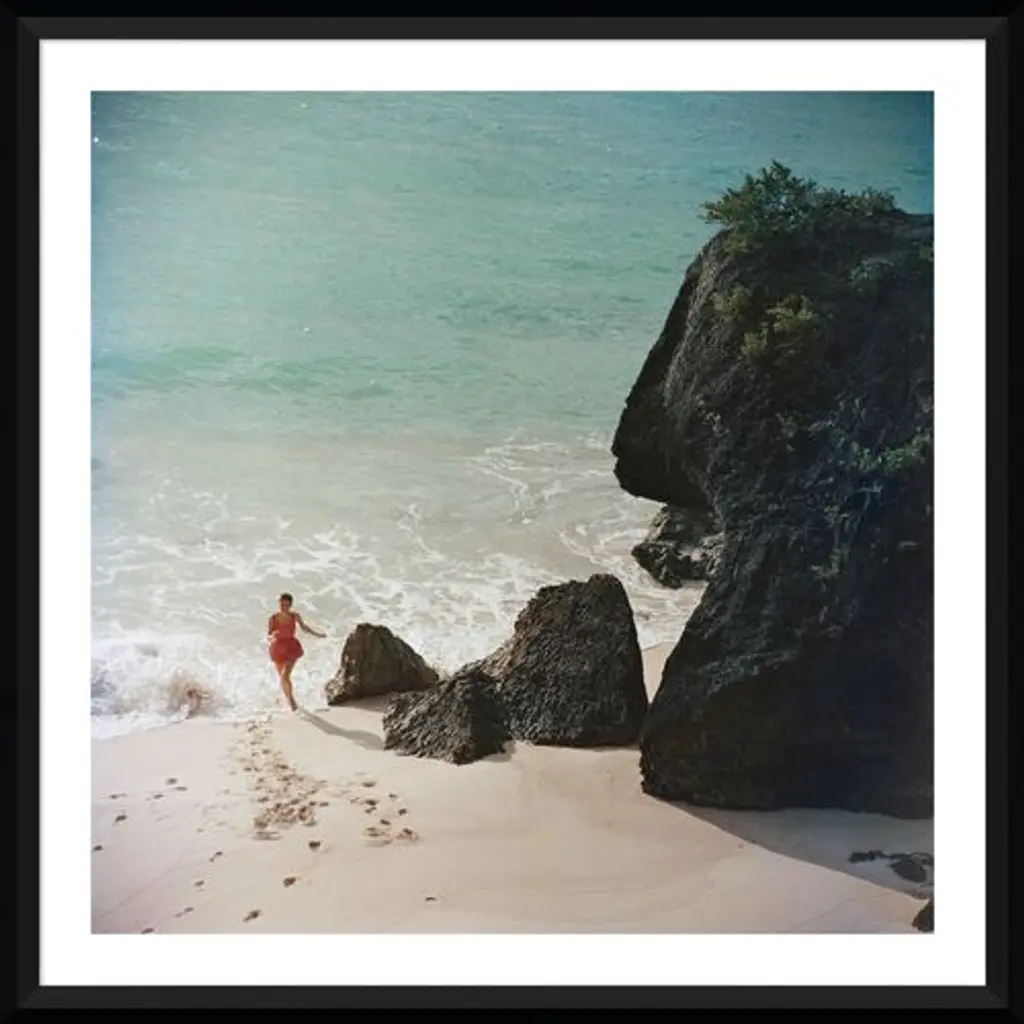 Taken in 1957, this image from the legendary Slim Aarons captures a woman enjoying a carefree day on a Bermuda beach. Printed on archival paper, it arrives matted, framed, and ready to hang.