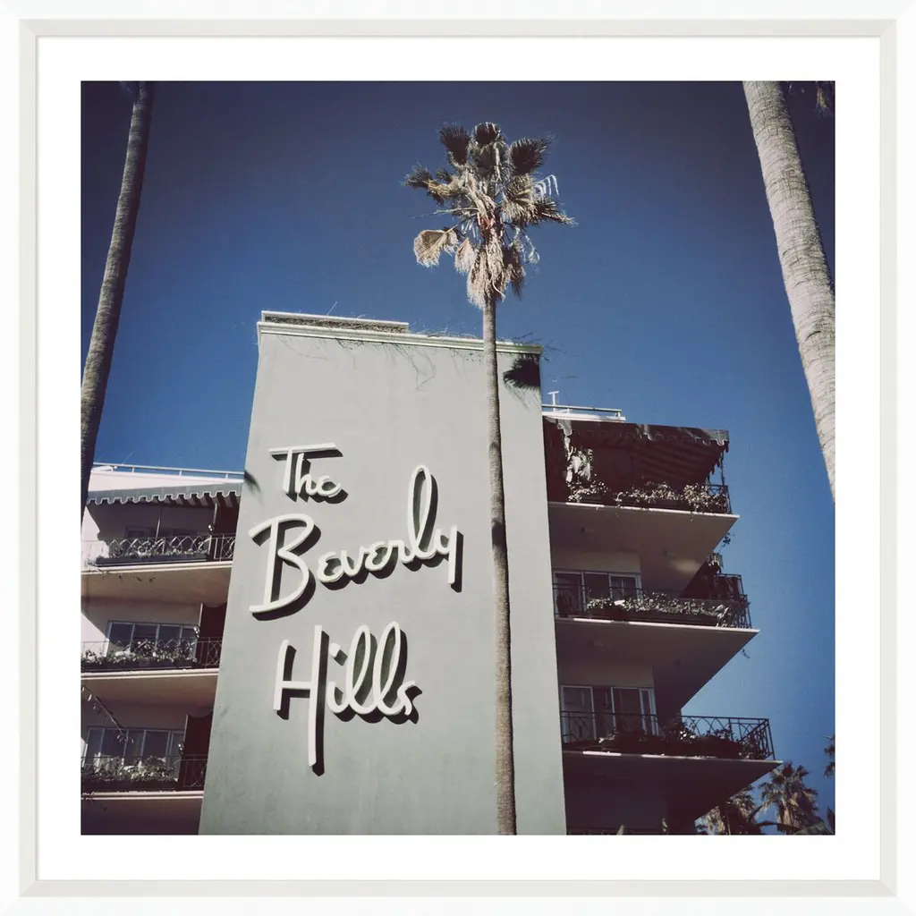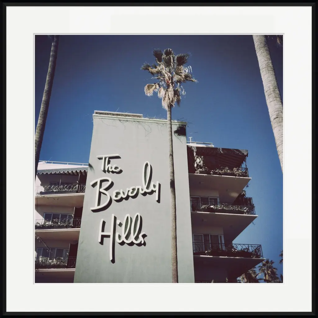 Legendary photographer Slim Aarons took this photo of the iconic Beverly Hills Hotel on Sunset Boulevard in 1957. Printed on archival paper, the photo arrives matted, framed, and ready to hang.
