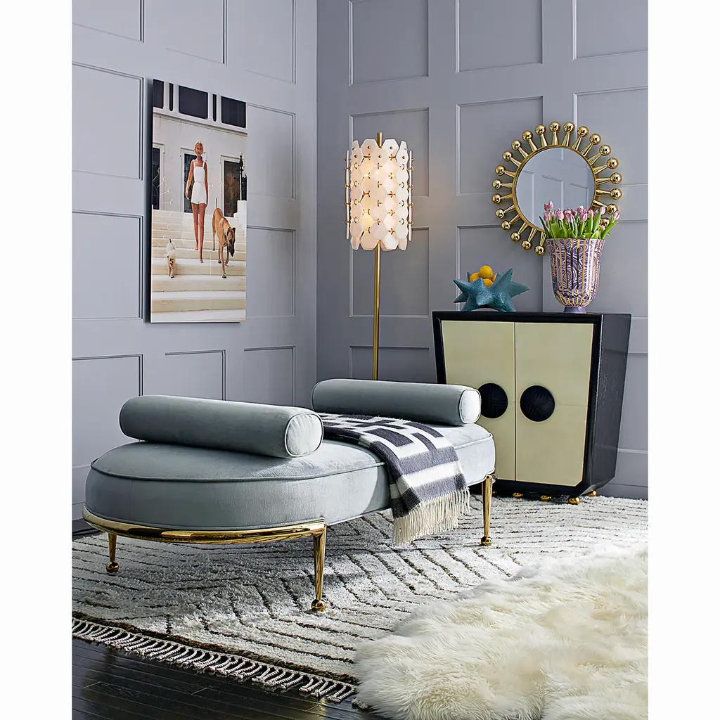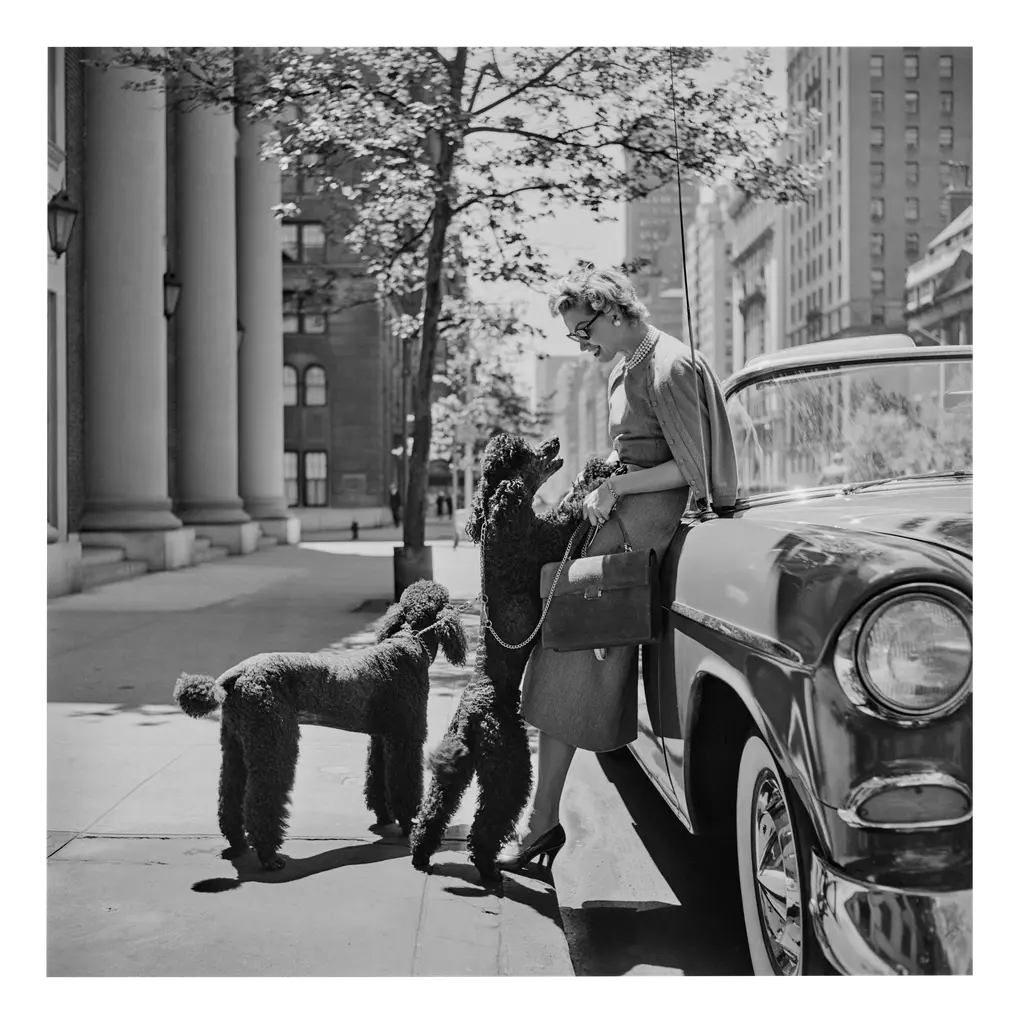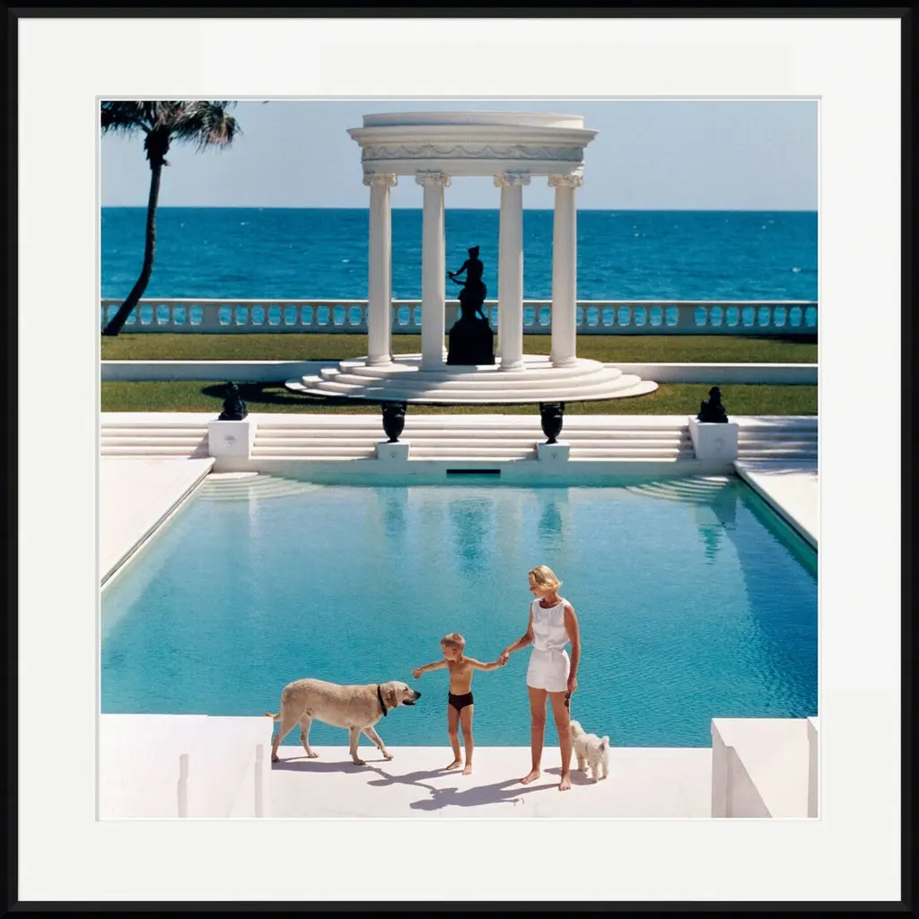 Circa 1955—American socialite C. Z. Guest with a poodle and a Great Dane at her ocean-front estate, Villa Artemis, in Palm Beach, Florida. Hand-selected from American photographer Slim Aarons' classic collection. Aarons is renowned for his evocative photographs of, as he described it, "attractive people doing attractive things in attractive places." Each image is printed from scans of the original negative then mounted on aluminum and faced with museum quality Plexiglas. Please allow approximately 3 to 5 weeks for delivery. Jonathan Adler offers premium quality photographic prints from the Slim Aarons Archive, owned and housed by Getty Images. All photographs are printed and authorized by the Getty Images Gallery, London. Not eligible for discount