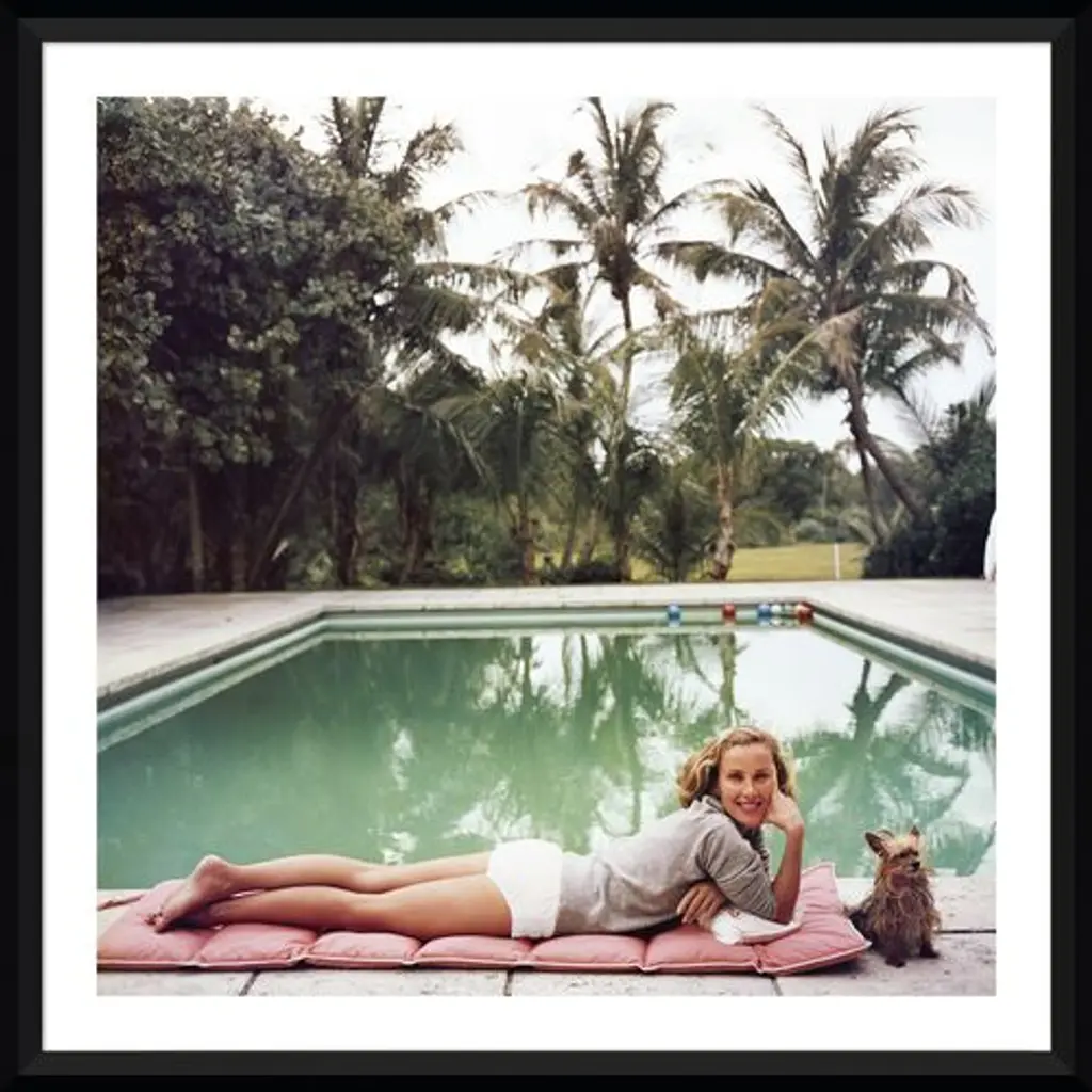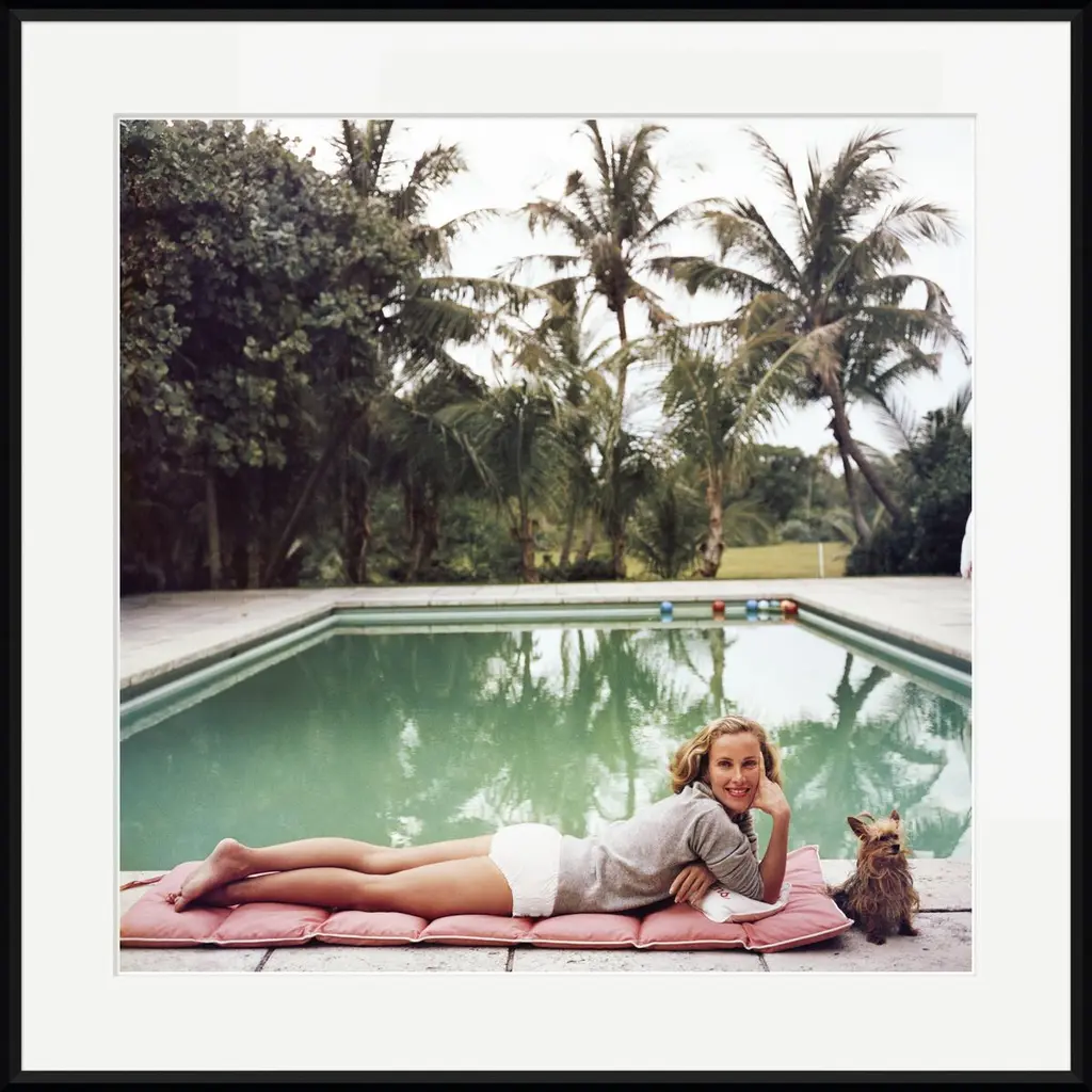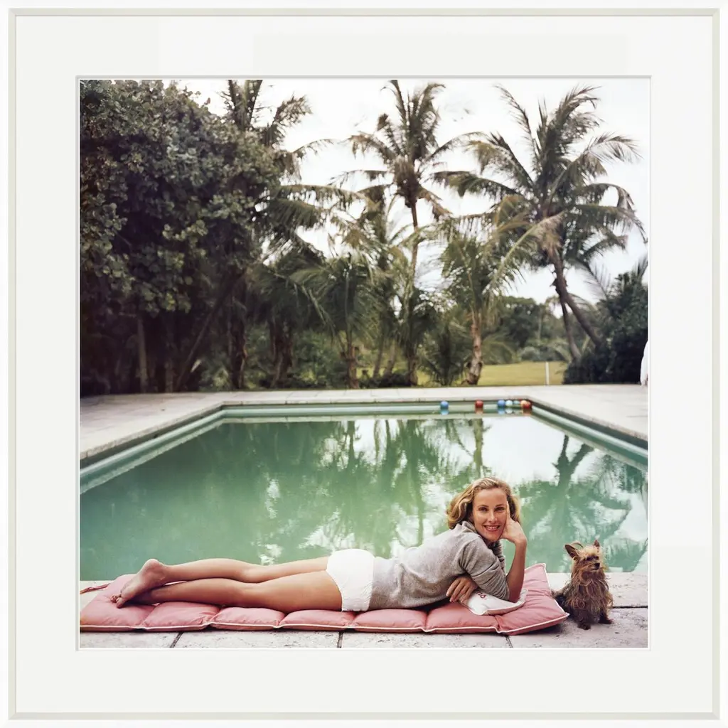 Taken on January 1, 1959, this image from Slim Aarons captures socialite Alice Topping relaxing by a pool in Palm Beach. Printed on archival paper, the photo arrives matted, framed, and ready to hang.
