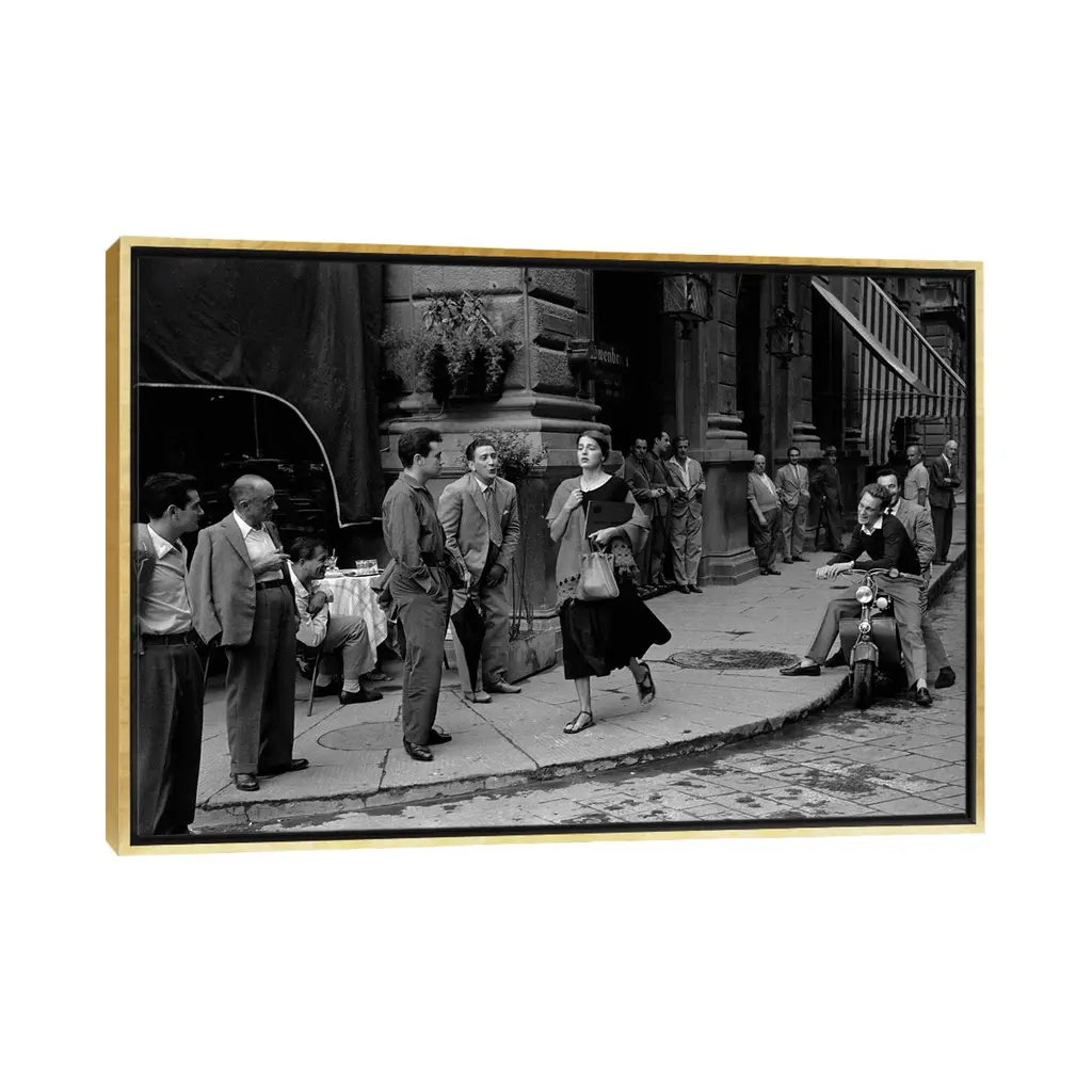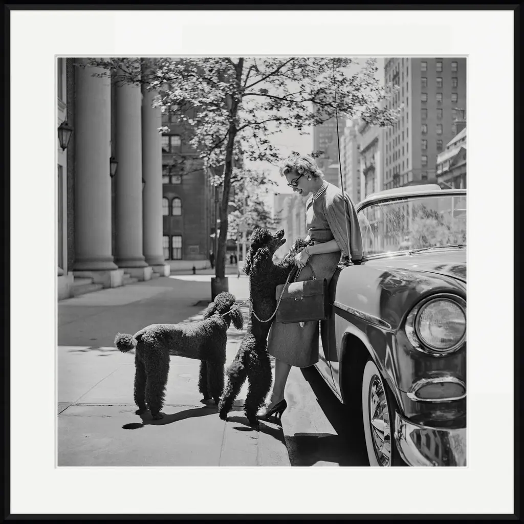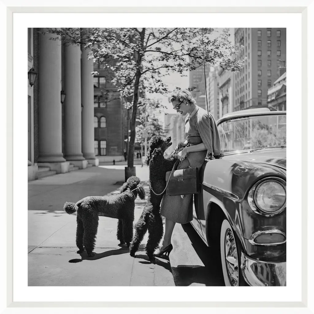Slim Aarons described his photos as depicting “attractive people doing attractive things in attractive places.” Case in point: this 1956 image of Swedish model (and wife of Argentina's financial minister at the time) Inga Lindgren on Manhattan's Park Avenue with her poodles Ajax and Wacky. Printed on archival paper, the photo arrives matted, framed, and ready to hang.