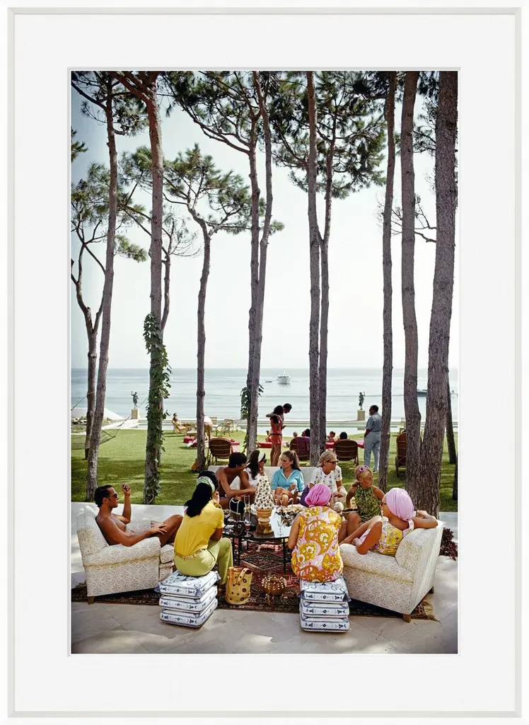 Slim Aarons described his photos as depicting “attractive people doing attractive things in attractive places.” Case in point: this 1967 image of a house party in Marbella, Spain. Printed on archival paper, the photo arrives matted, framed, and ready to hang.