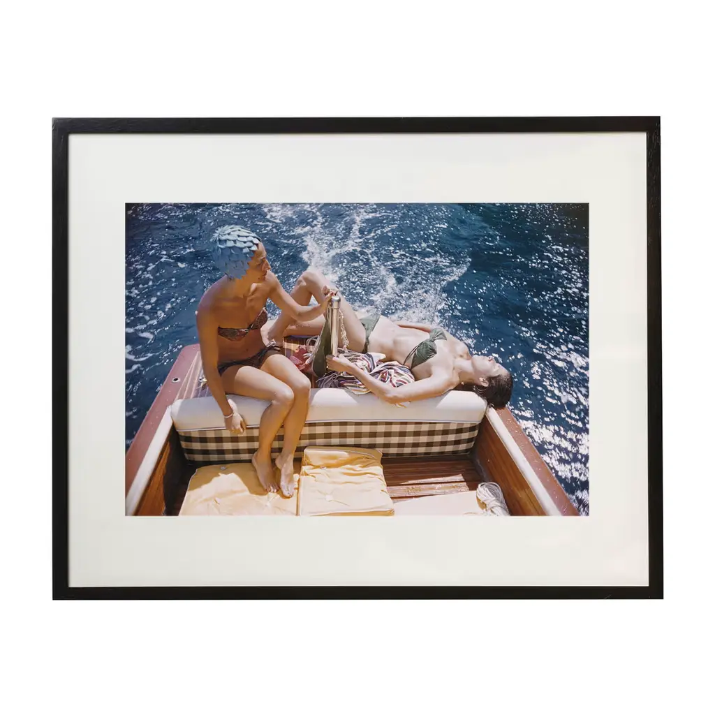 Slim Aarons described his photos as depicting “attractive people doing attractive things in attractive places.” This 1975 image of friends boating off the coast of Monte Carlo is a case in point. Printed on archival paper, the photo arrives framed and ready to hang.