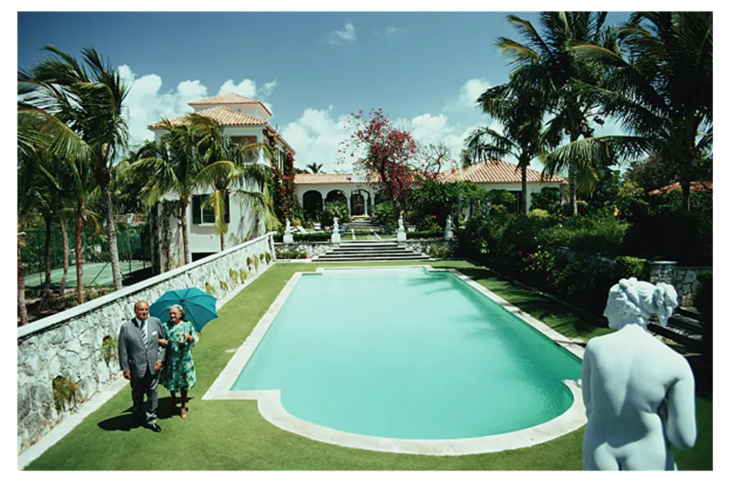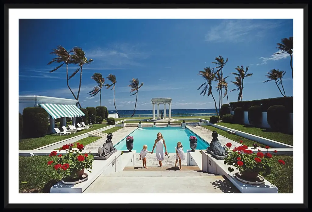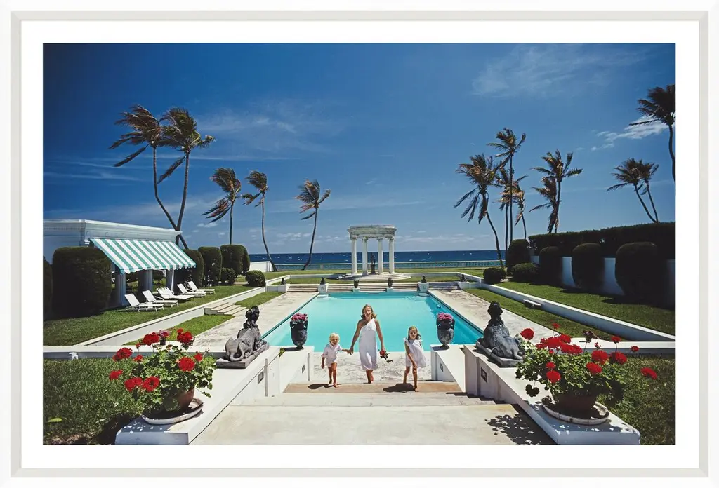 Taken in 1985, this image from legendary photographer Slim Aarons captures a stunning scene on a sunny day in Palm Beach. Printed on archival paper, the image arrives framed and ready to hang.