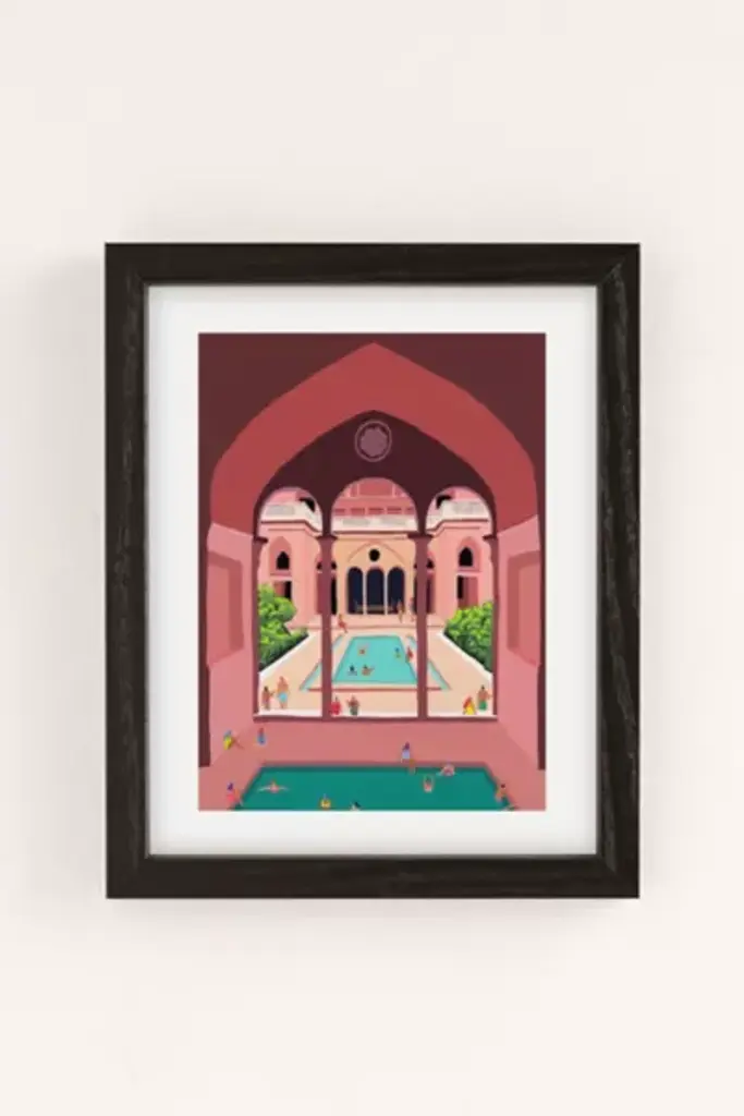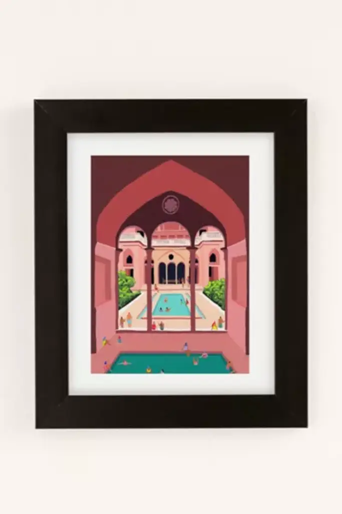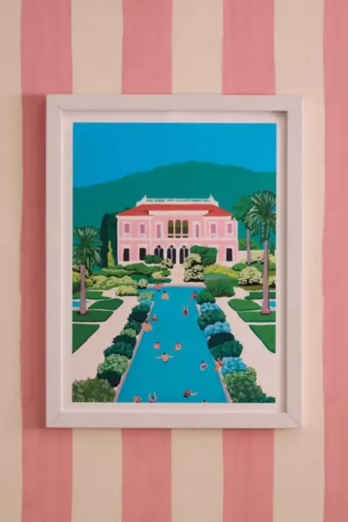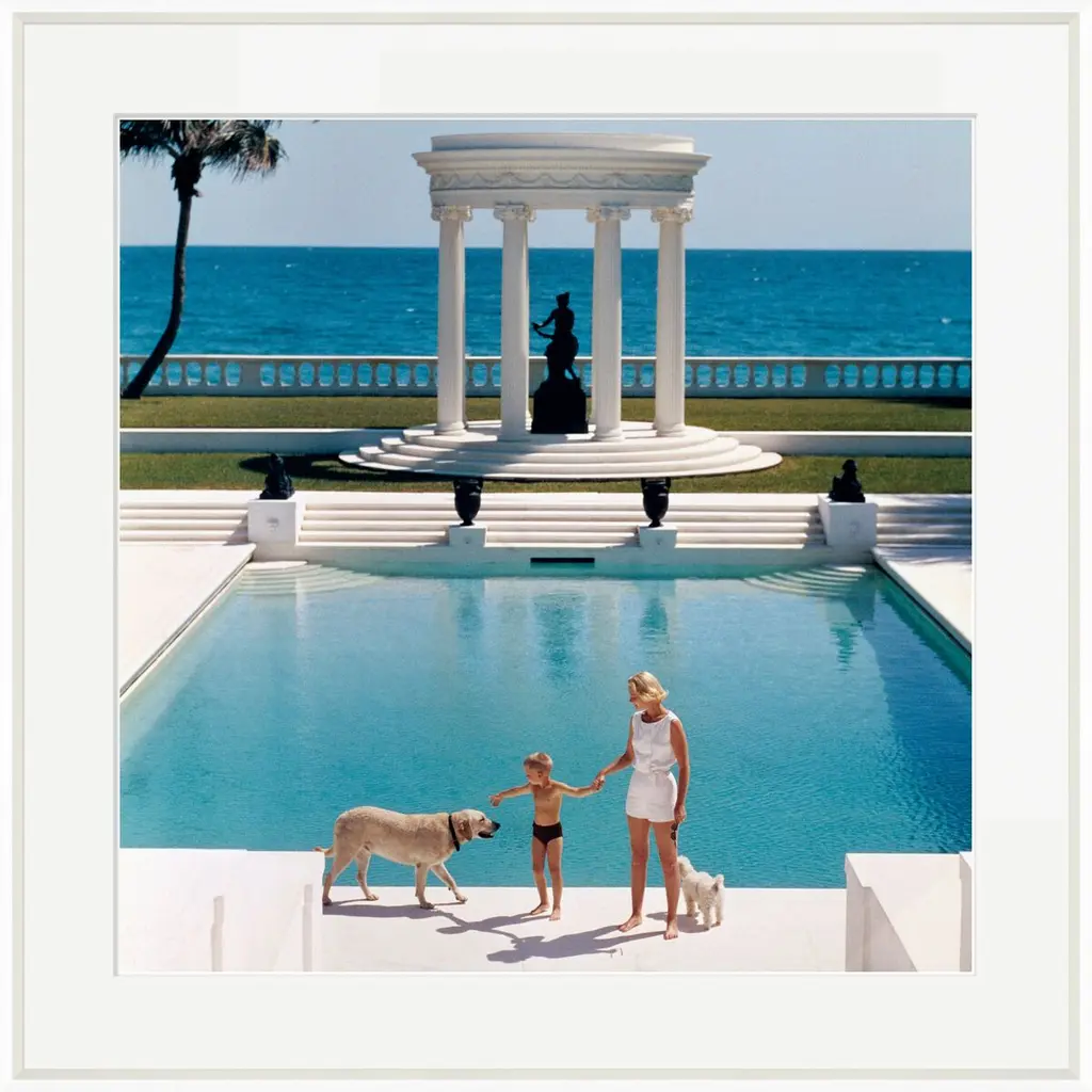 This iconic image from Slim Aarons shows socialite C.Z. Guest and her son in front of the Grecian temple pool at their oceanfront estate in Palm Beach. Printed on archival paper, the photo arrives framed and ready to hang.