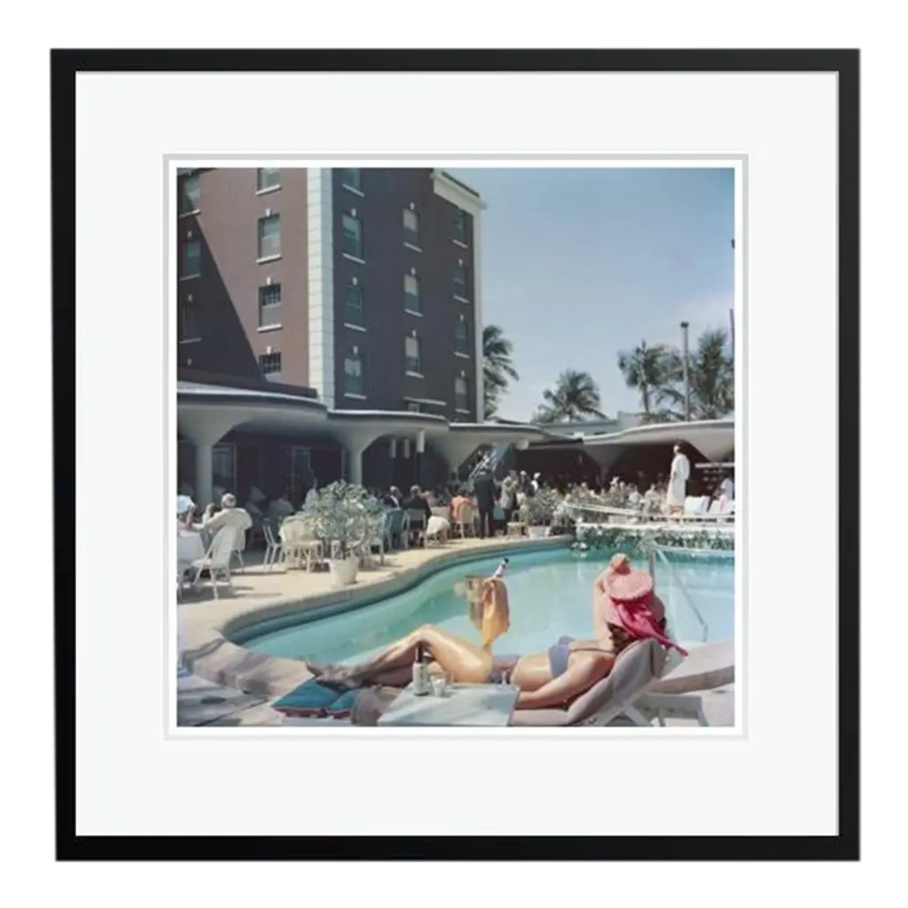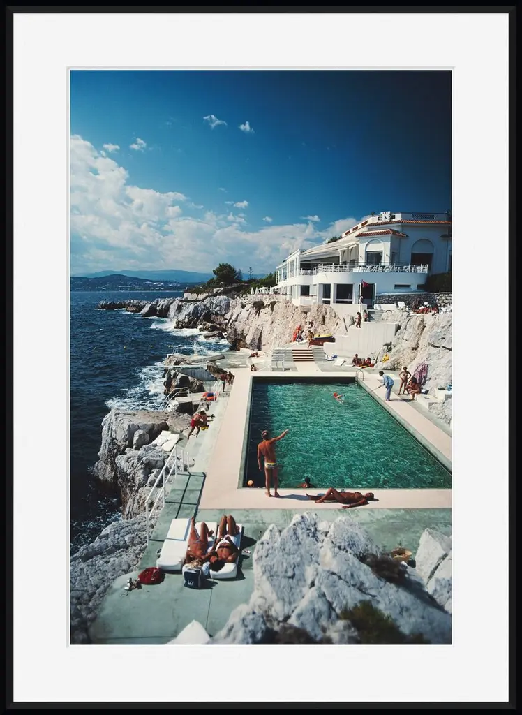 Taken in August 1975, this image from Slim Aarons captures a group of sunbathers around a pool in Sotogrande, Spain. Printed on archival paper, the image arrives matted, framed, and ready to hang.