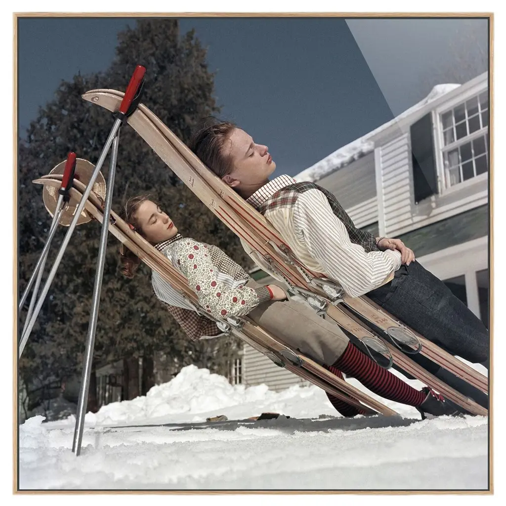 Slim Aarons described his photos as depicting “attractive people doing attractive things in attractive places.” Case in point: this 1955 image of skiers on the slopes of New Hampshire's Cranmore Mountain. Printed on archival paper, the photo arrives matted, framed, and ready to hang.