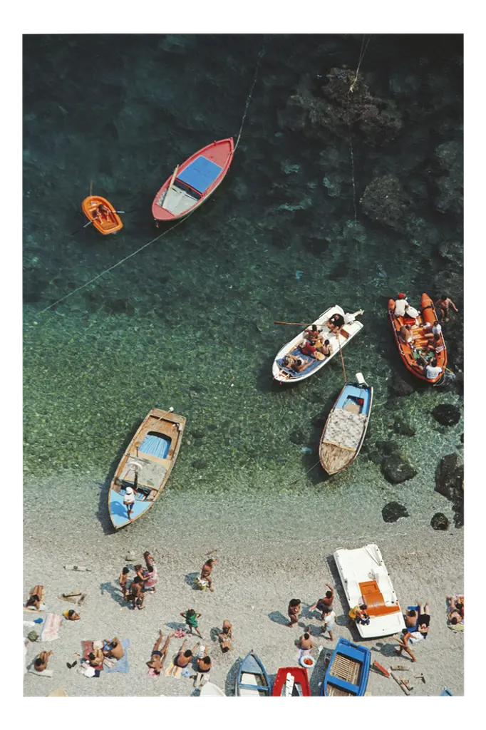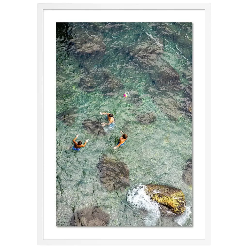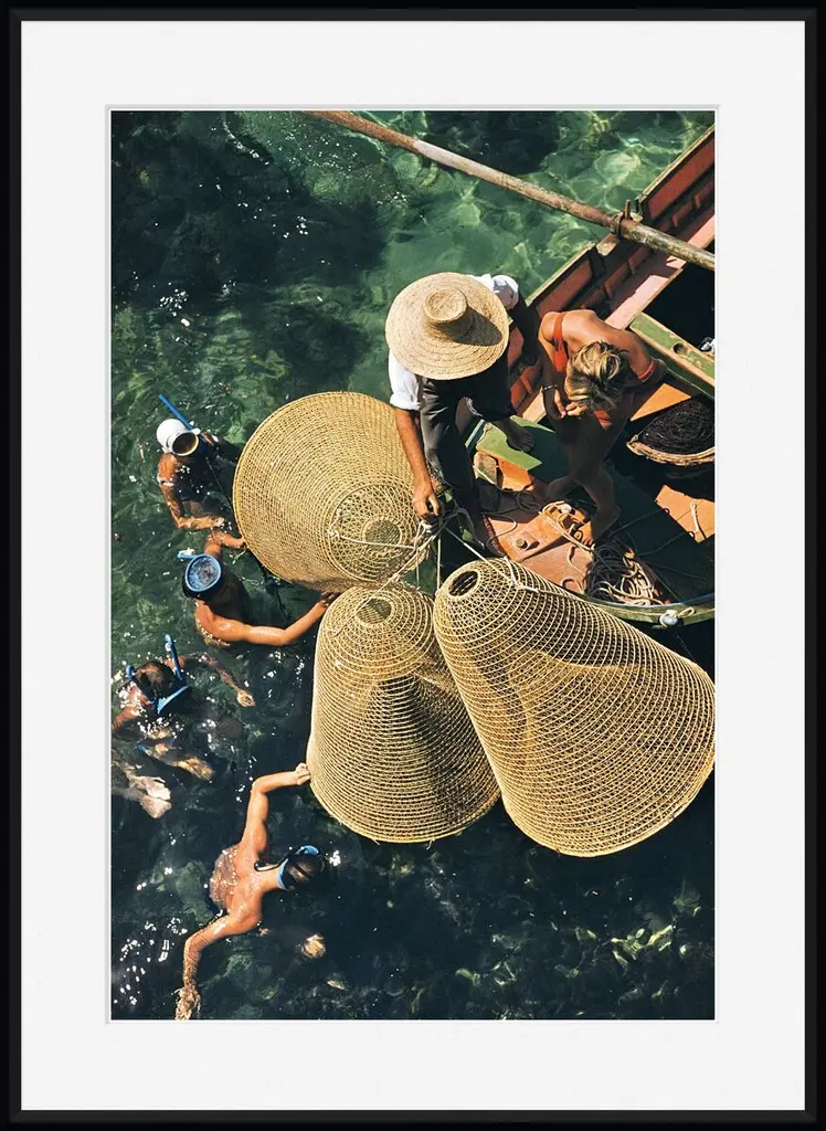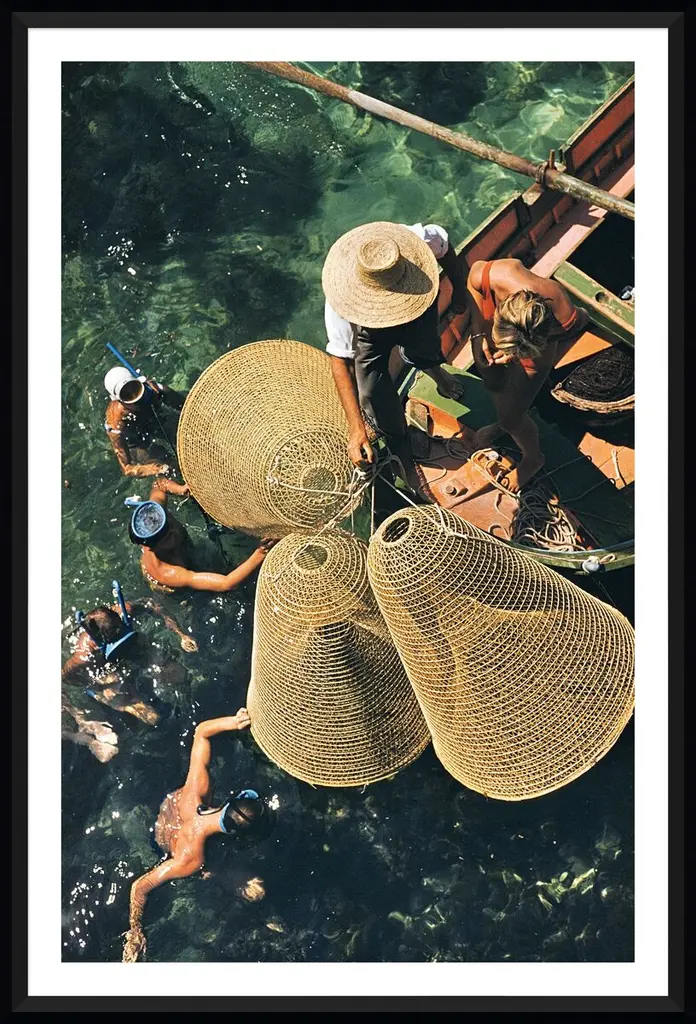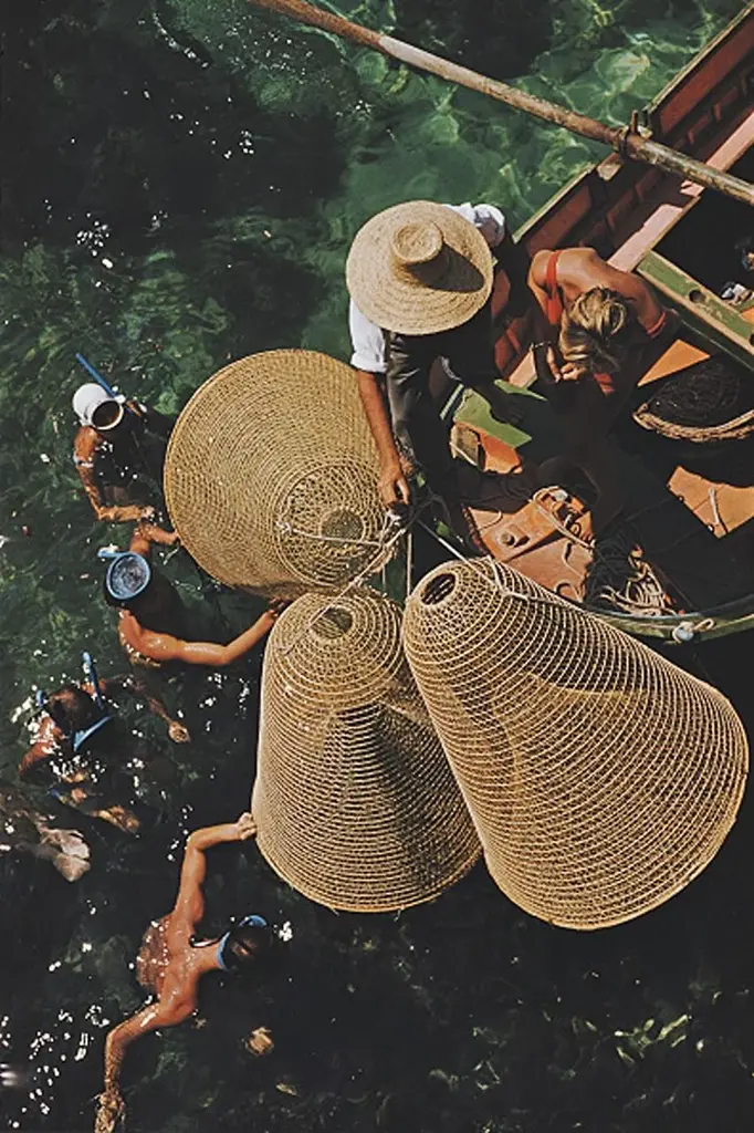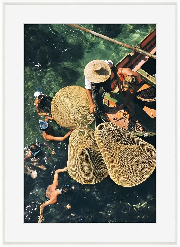 A group of young men and women snorkel in the warm, crystal clear waters off the island of Malta, as they experience the bell shaped traps used for capturing lobsters. 16 x 20" print. Limited Edition Estate Stamped Print. Edition of 150. Printed Later. "Snorkelling in the Shallows" is a beautiful Limited Edition Estate Stamped Digital C-Type print from 20th Century photographer Slim Aarons. Please note that as of 1st March 2025, the Slim Aarons Estate Stamped Collection aligned its pricing across the entire collection. Please bear in mind that all prints are produced to order. Lead times are expected between 5-15 days. Currency fluctuations may cause the price to change. This is a contemporary print from the Getty Archive using Slim Aarons negatives. All prints feature a Slim Aarons blindstamp, and are accompanied by a Slim Aarons Certificate of Authentication issued by Getty. Labeled by Maker,Stamped by Maker,This piece has an attribution mark, I am sure that it is completely authentic and take full responsibility for any authenticity issues arising from misattribution