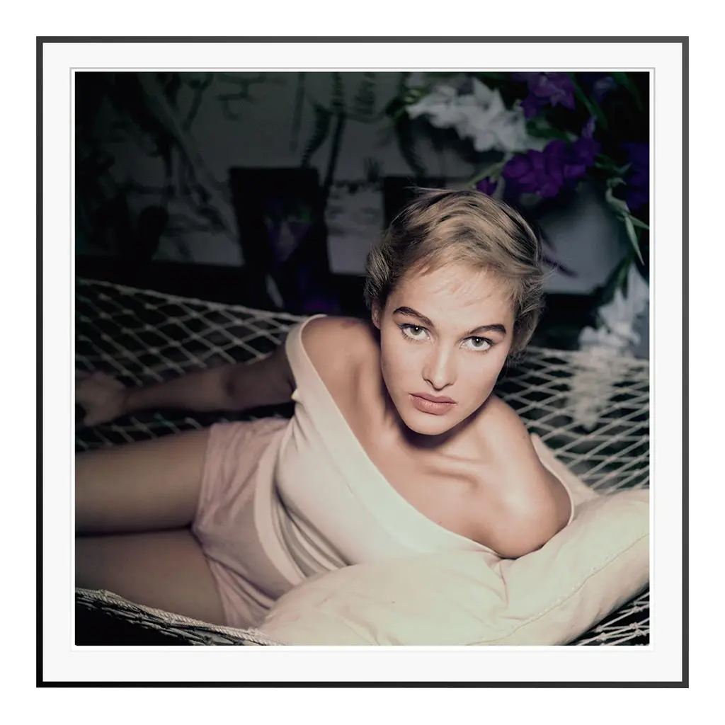This portrait of Swedish actress Ursula Andress by Slim Aarons casts the James Bond girl in a sultry and seductive light, contrasts smoothly with the soft pink hues and gentle shades of the decor and Andress' clothing. 16 x 20" print. Limited Edition Estate Stamped Print. Edition of 150. Printed Later. "Ursula Andress" is a beautiful Limited Edition Estate Stamped Digital C-Type print from 20th Century photographer Slim Aarons. Please bear in mind that all prints are produced to order. Lead times are expected between 5-15 days. Currency fluctuations may cause the price to change. This is a contemporary print from the Getty Archive using Slim Aarons negatives. All prints feature a Slim Aarons blindstamp, and are accompanied by a Slim Aarons Certificate of Authentication issued by Getty. Labeled by Maker,Stamped by Maker,This piece has an attribution mark, I am sure that it is completely authentic and take full responsibility for any authenticity issues arising from misattribution