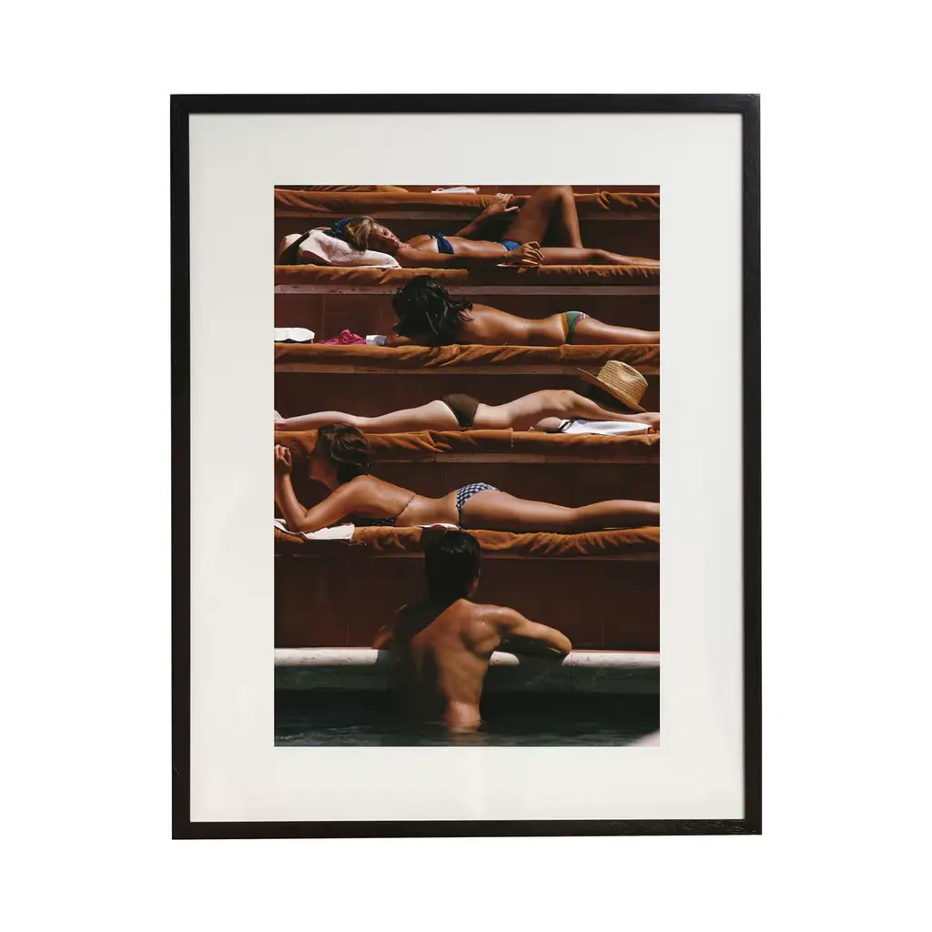 Slim Aarons described his photos as depicting “attractive people doing attractive things in attractive places.” Case in point: this 1958 image of Carla Vuccino and Marina Rava lolling on a boat off the Italian island of Capri. Printed on archival paper, the photo arrives matted, framed, and ready to hang.