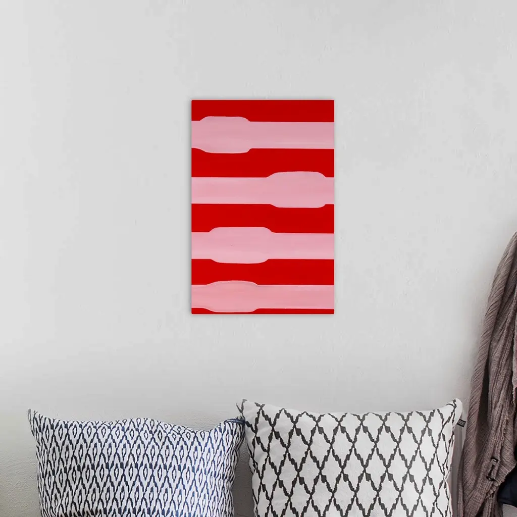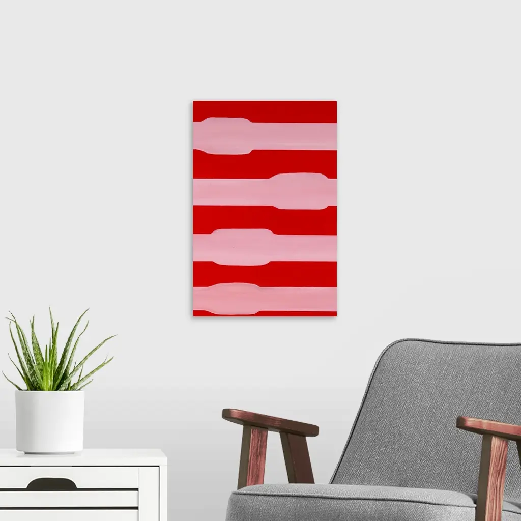 Red and pink asymmetric abstract painting.