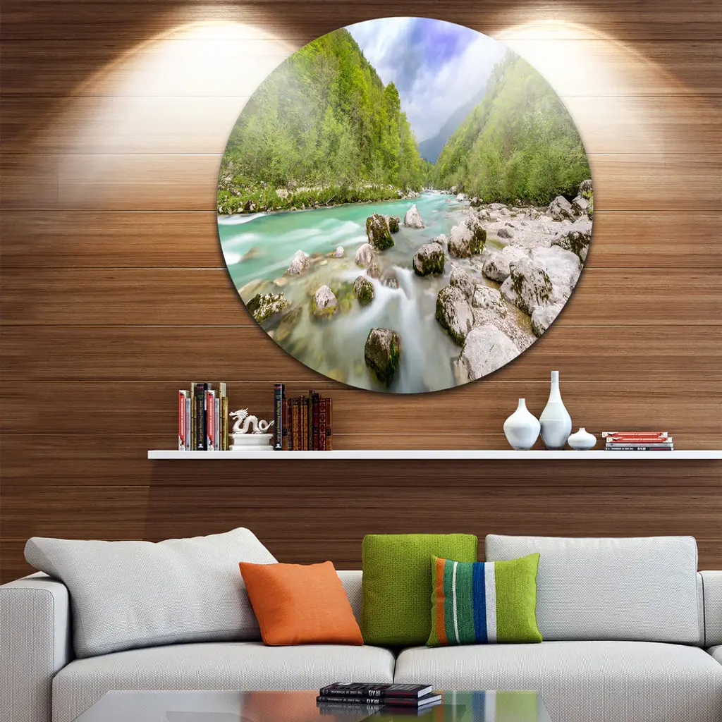 Slovenia Waterfall Panorama, Landscape Round Wall Art, 23"