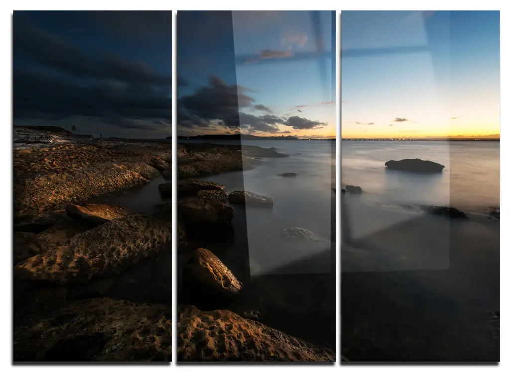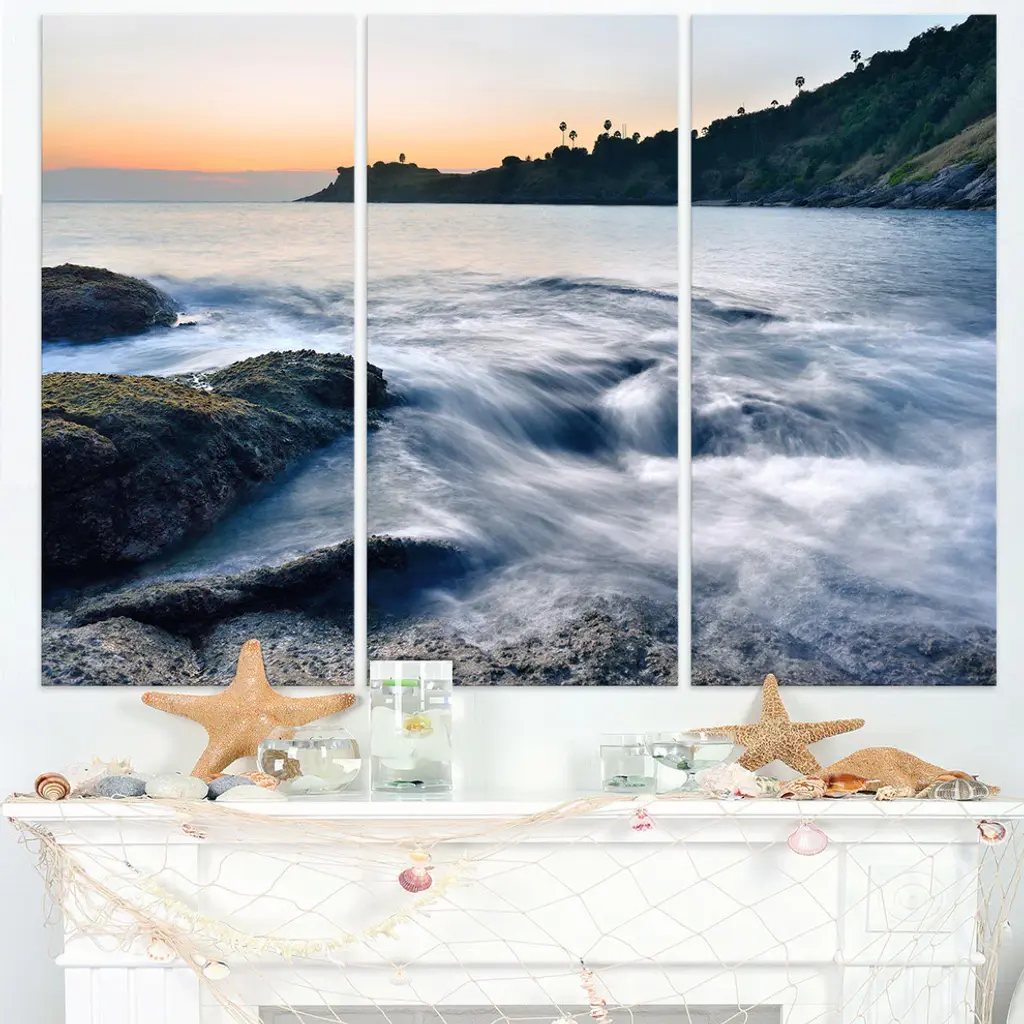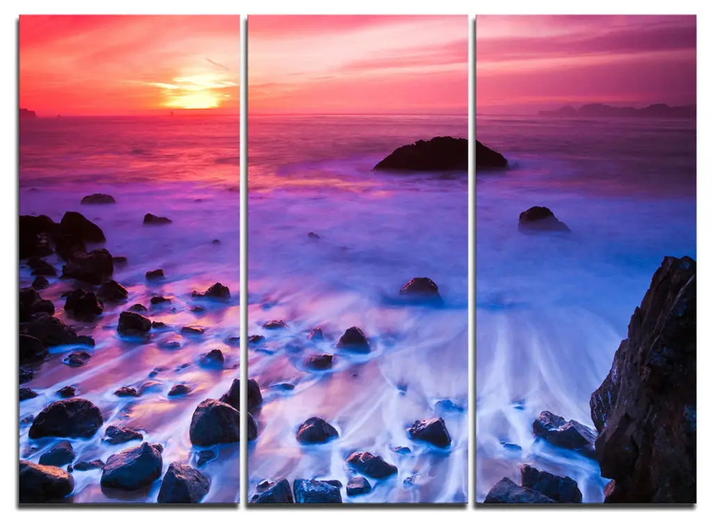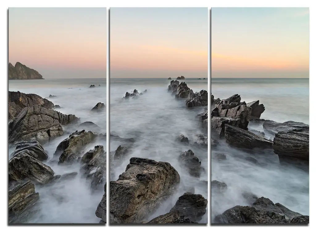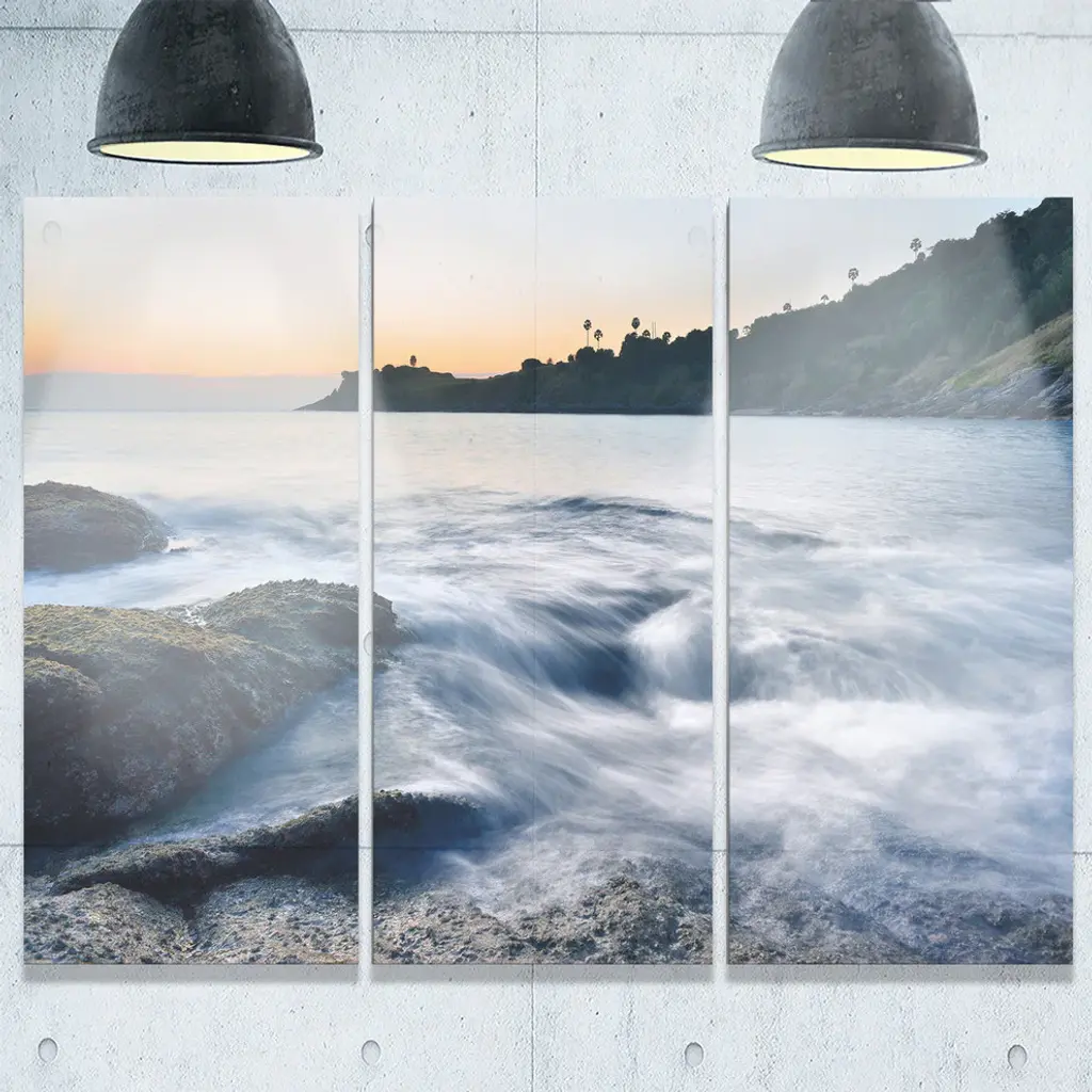 "Slow Motion Sea Waves Over Rocks" Metal Wall Art, 3 Panels, 36"x28"